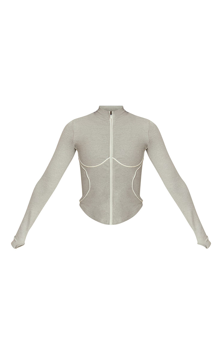 Feel fresh with this ash grey marl seamless contrast seam jacket. Brought to you in an ash grey smooth seamless material with a contrast seam detailing, this jacket offers a figure-enhancing fit with ultimate comfort. Style with matching separates and sporty sneakers for a sleek athleisure outfit.