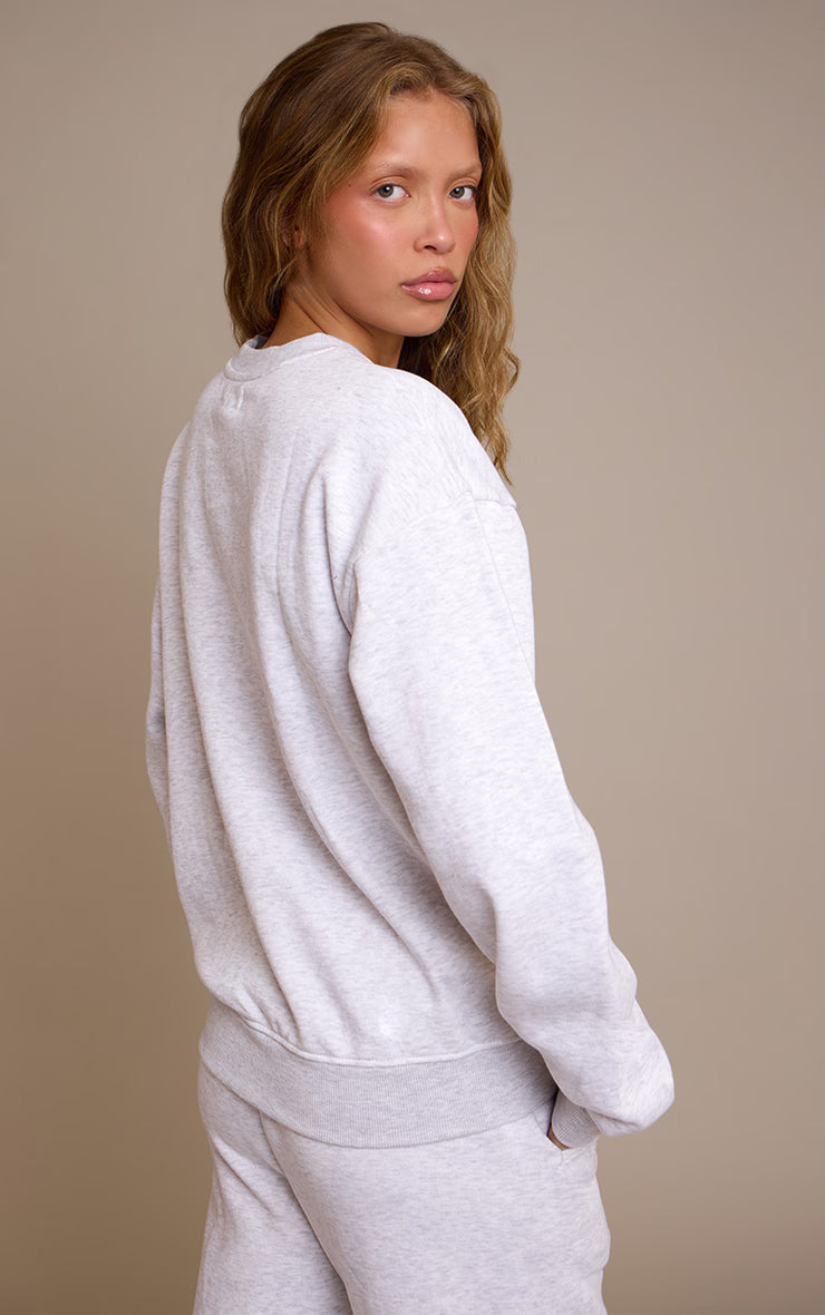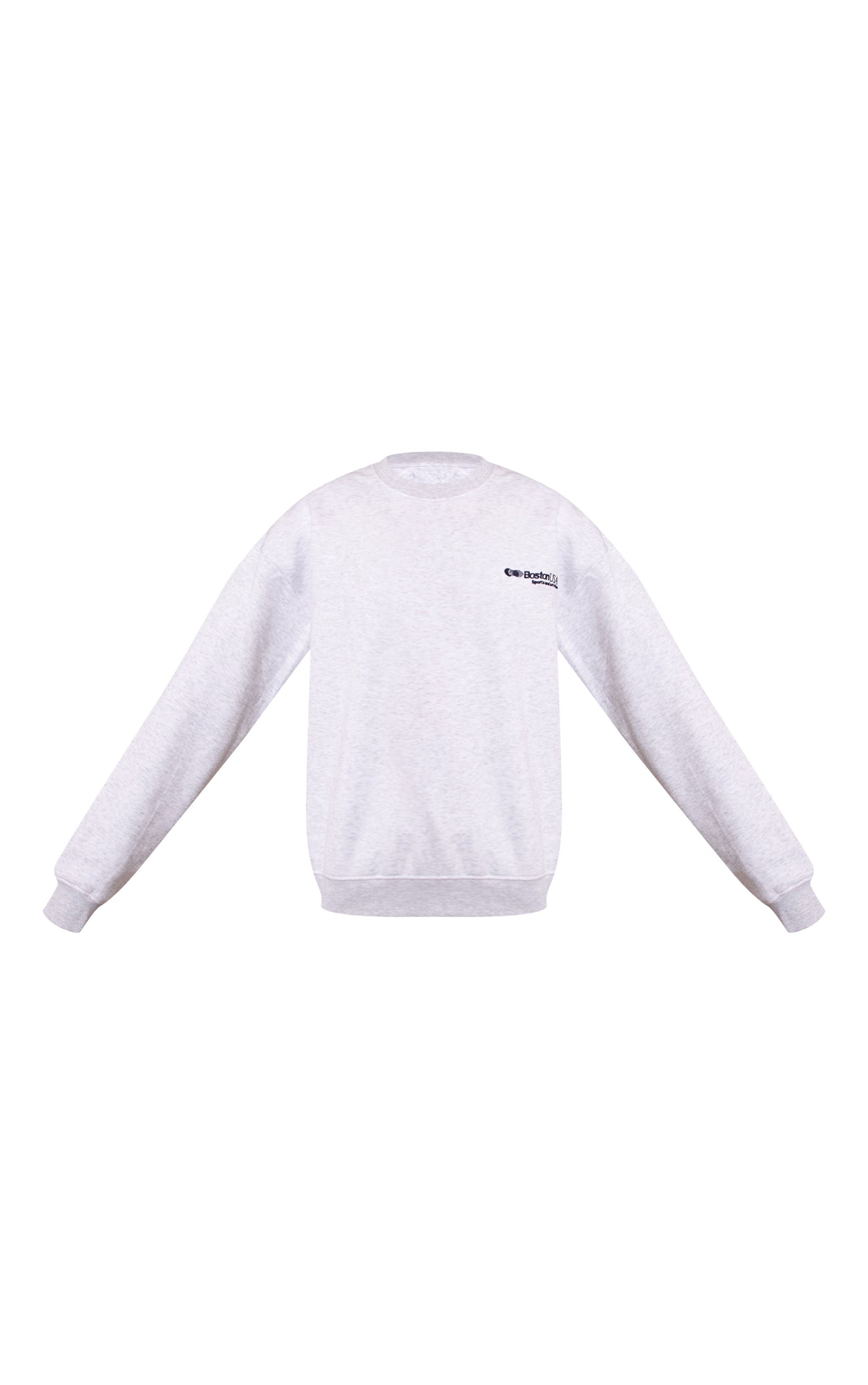 Define your off-duty rotation with a piece that masters subtle impact. The ash grey oversized boston usa embroidered Sweatshirt delivers an artfully relaxed silhouette in a versatile ash grey, designed with a classic crew neckline and dropped shoulders, subtly accented by its distinctive 'Boston USA' embroidery on the chest. Pair this essential sweater with sleek tailored pants for a polished yet comfortable daytime ensemble, or keep it coordinated with matching sweatpants for an effortlessly cohesive aesthetic. Elevate either look with a sharp pair of black kitten heels and a minimalist gold ring to complete an outfit that owns the day with understated confidence.