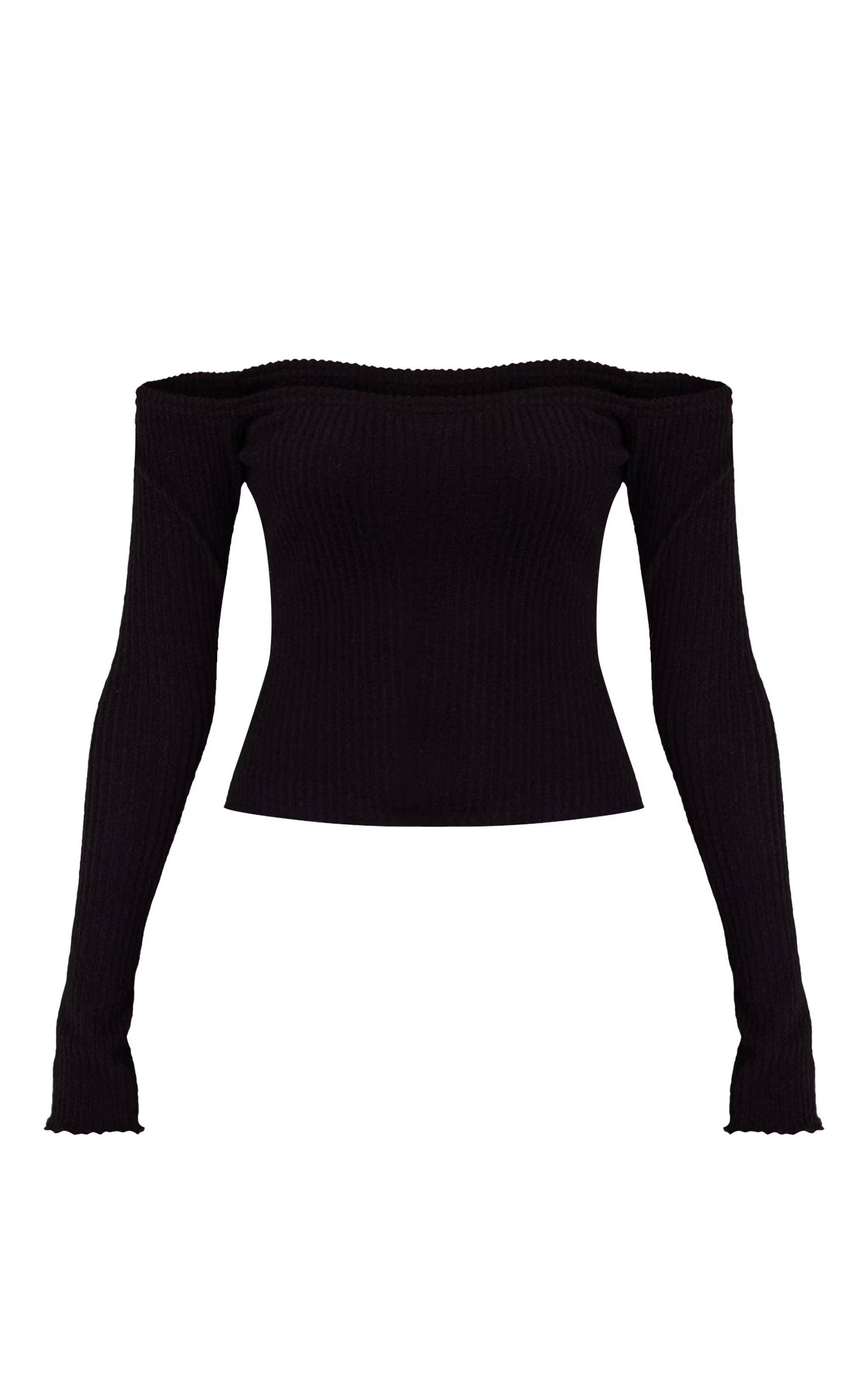 Artfully composed for your day edit, the black brushed rib bardot long sleeve top offers a sophisticated twist on casual foundations. Its confident square neckline is designed to be worn artfully off-shoulder, showcasing a refined decolletage, complemented by sleek long sleeves and a sharp, close-fitting silhouette. Pair with high-waisted wide-leg jeans and ground your aesthetic with chic cowboy boots for an effortlessly cool ensemble, adding delicate stud earrings for a polished finish. This versatile piece is your blueprint for an understated yet impactful day look.