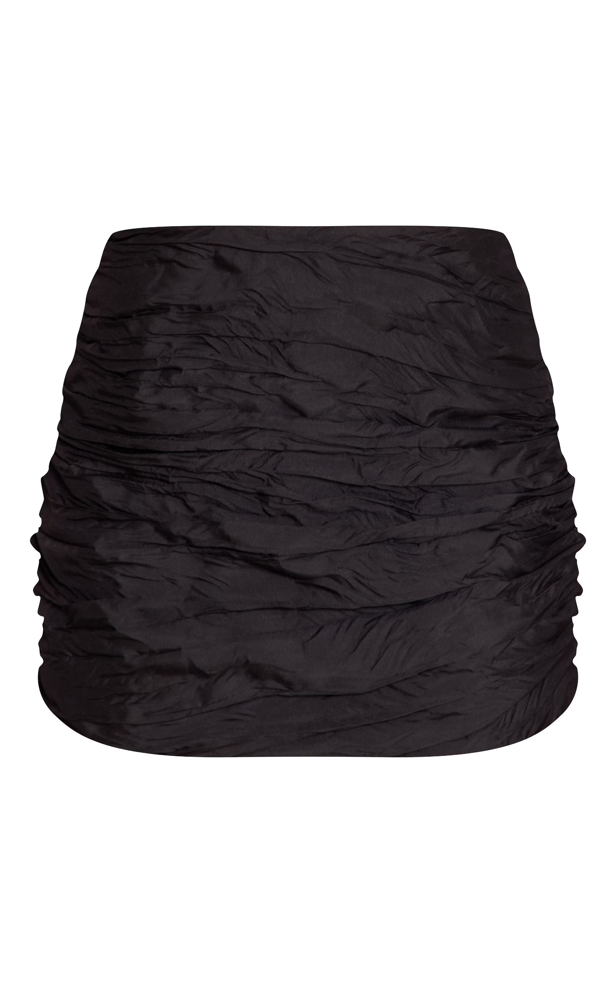 Make an undeniable impact the moment you step out. The black crinkled woven mini skirt commands attention with its high-waisted cut and striking ruched detailing, designed to sculpt and flatter. A discreet side zip ensures a sleek line, while the distinct crinkled finish adds an effortless, artful dimension. Team this essential with its matching top for a polished two piece set, or introduce a structured blazer over a minimalist camisole for an elevated aesthetic, completed by sharp small heels and a selection of gold bracelets for an assured, confident finish.