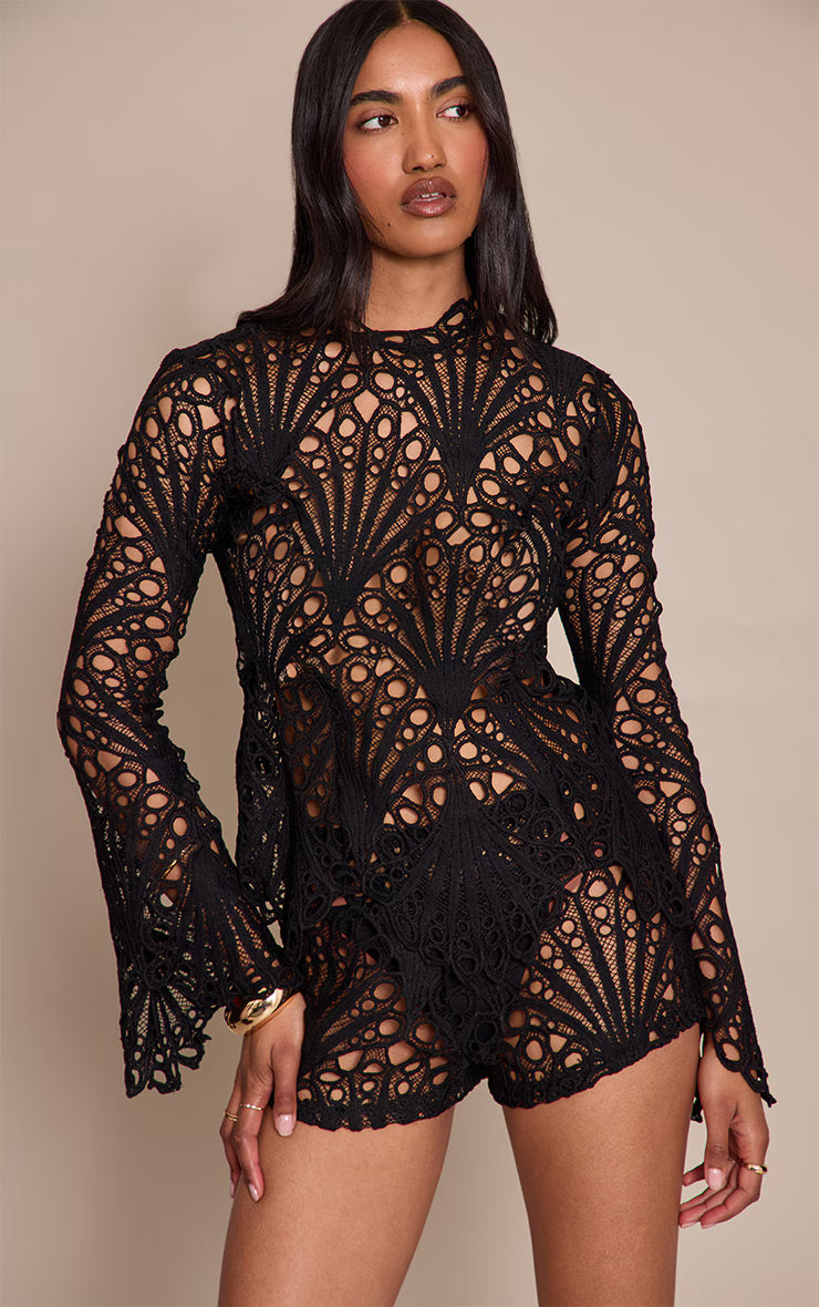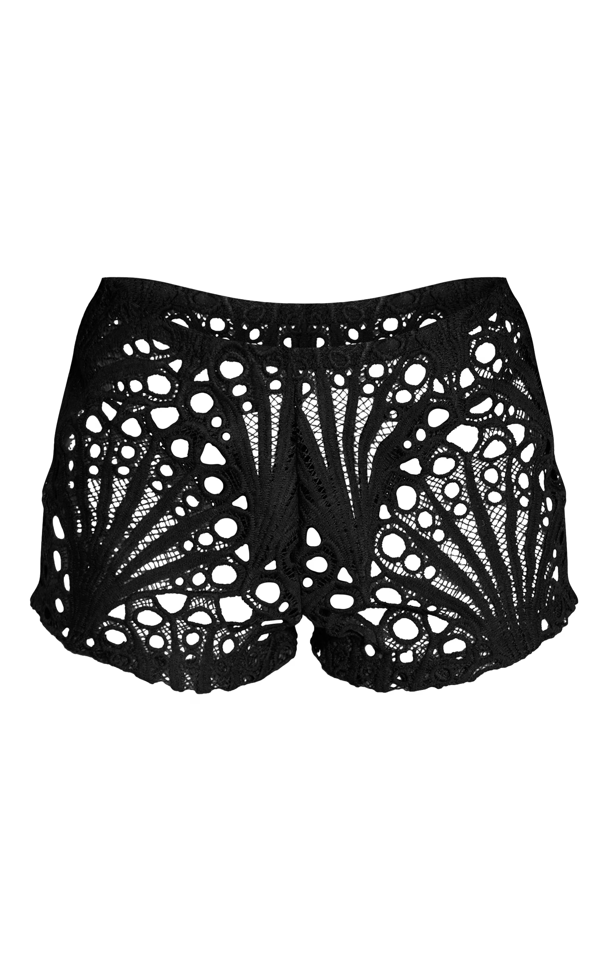 Turn up the heat with the black floral lace hot pant. Designed in black floral lace with soft stretch and a cheeky cut, it sits smoothly under clothing while adding a sultry edge. Coordinate with the matching lace shirt, strappy heels and a mini bag for daring after-dark styling.