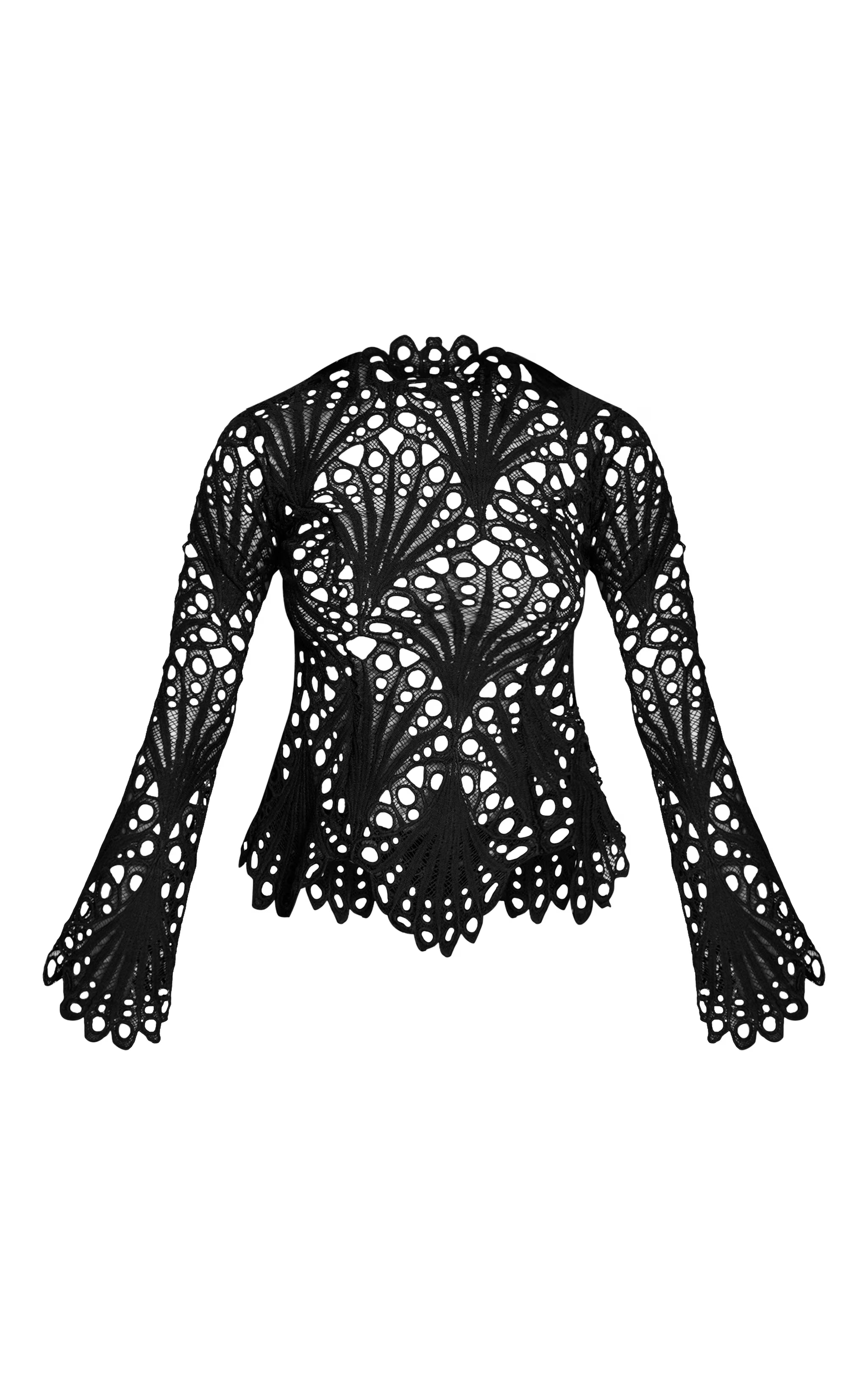 Elevate sheer tailoring in the black floral lace long sleeve shirt. Made from black floral lace with a neat collar and button front, the semi-sheer finish layers elegantly over a bralette. Team with a satin midi skirt or the matching hot pants, gold earrings and heels for sophisticated texture play.