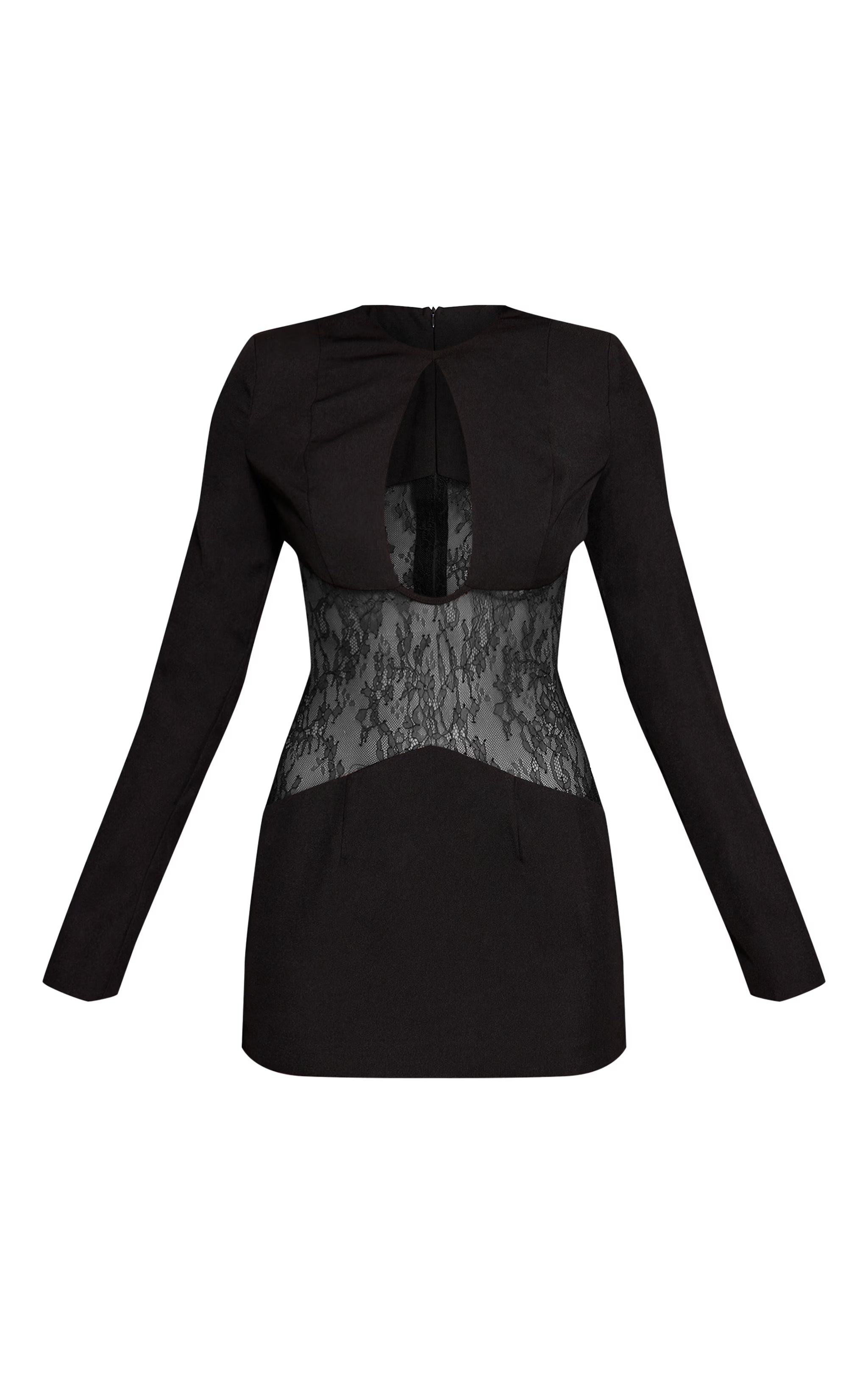 Presence is everything, and this dress delivers. The black lace cut out detail mini dress sculpts a bodycon silhouette with intentional distinction, featuring a daring decolletage cut-out and a meticulously crafted lace panel that contours the waist. Elegant long sleeves complete this confident mini length for an assured evening presence. Complete this arresting look with sleek high heels, adding a perfectly selected black bag. Your evening just found its boldest expression.