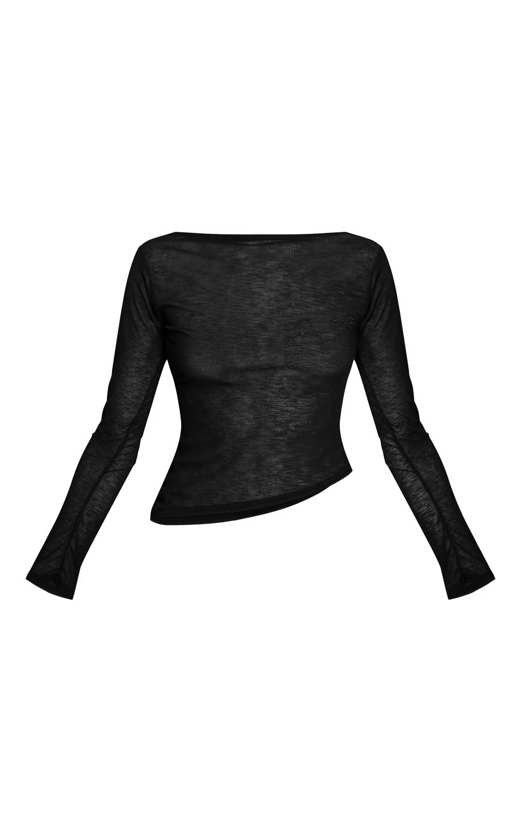 Define your everyday aesthetic with a knowing blend of subtlety and confident structure. The black onion skin rib boat neck flare sleeve top offers an artful, sheer finish, featuring a relaxed boat neckline and sleek long sleeves for an effortless profile. This versatile black top pairs seamlessly with high-waisted tailored pants for an elevated day look, or styled casually with wide-leg pants for an effortless, off-duty aesthetic. Ground your ensemble with sleek ballet flats and subtle stud earrings, completing an artful, self-assured presence that navigates the day with ease.