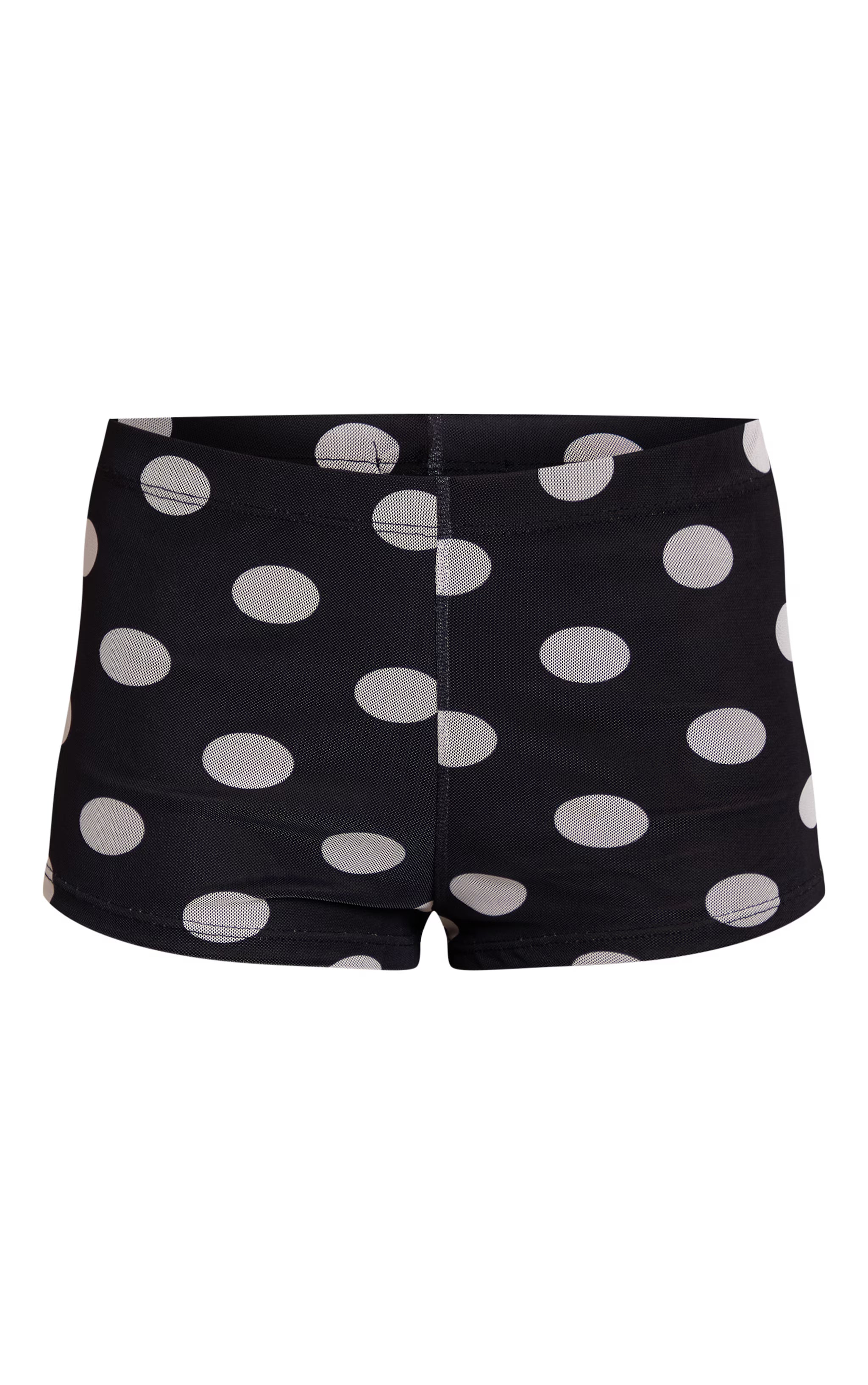 The black polka dot hot pants are a playful yet stylish piece perfect for summer or layering with tights in cooler months. Designed with a high waist and lightweight fabric, they pair effortlessly with fitted tops, cropped sweaters, or oversized knits. Style with strappy heels or ankle boots for a chic day-to-night transition. Add statement earrings or a blazer to elevate the look for evening occasions.