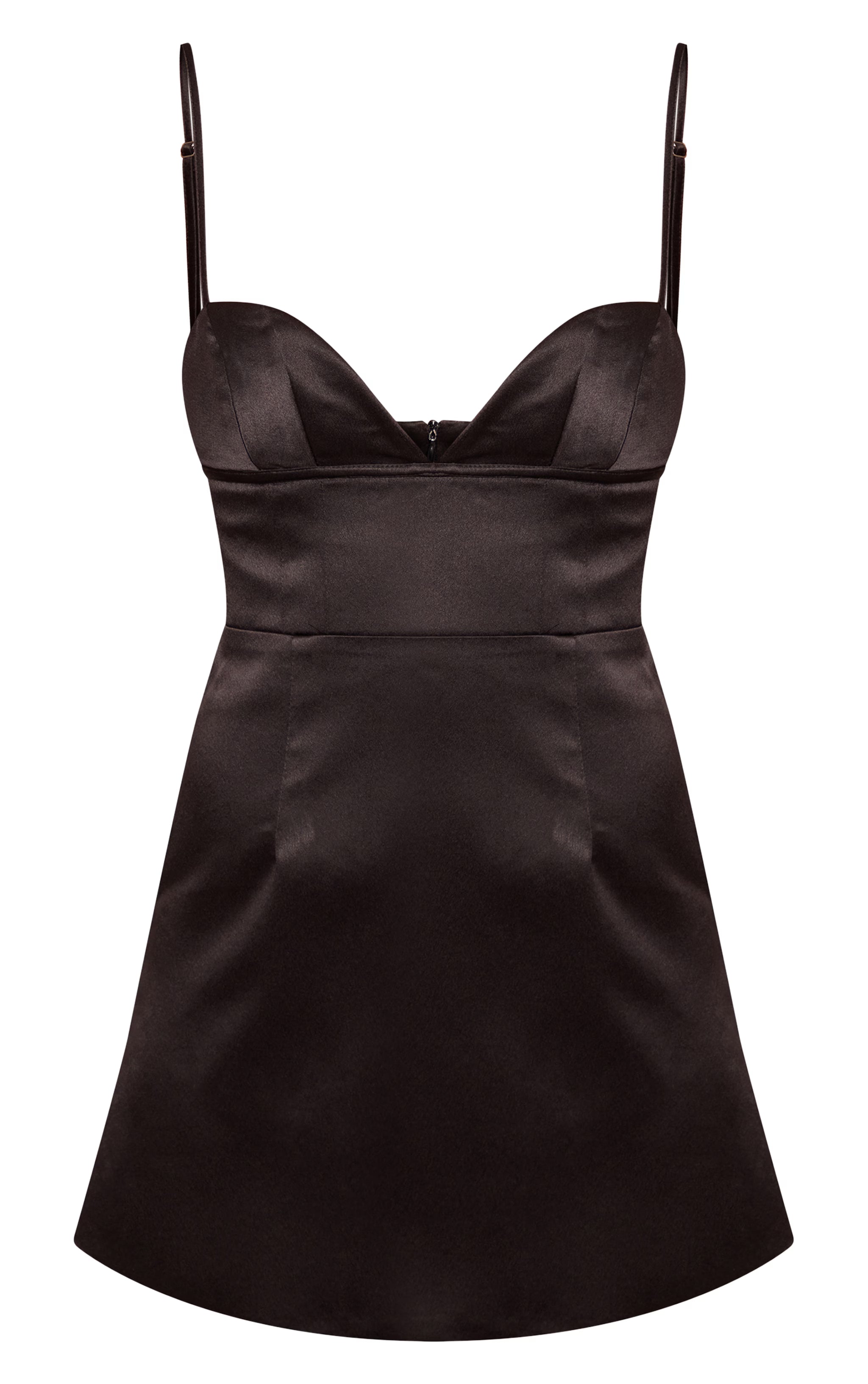 Step into sophistication with the black satin cut out v bust mini shift dress. Made from smooth satin in a classic black tone, this mini shift dress boasts a flattering V-bust cut-out design and soft tailoring for a polished finish. Pair with strappy heels and a bold lip for a confident night-out look.