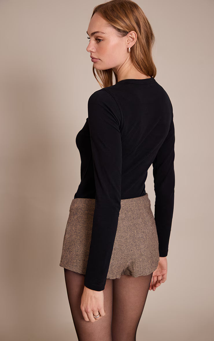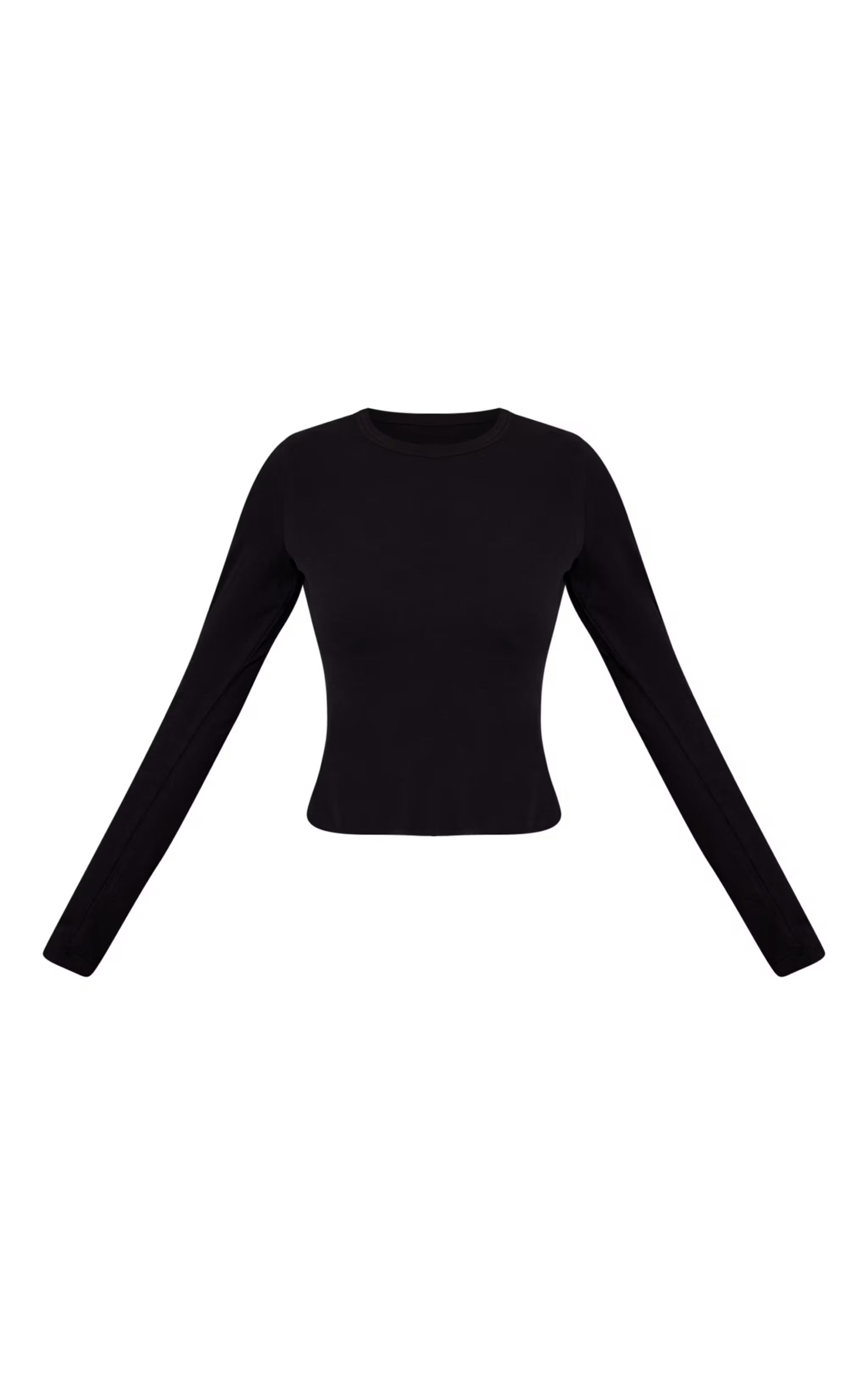 Craft a confident canvas for any ensemble with the black soft cotton crew neck longline long sleeve top. This essential piece features a classic crew neckline and full-length sleeves, designed with a longline cut that offers a streamlined profile, perfect for effortless layering or a standalone statement. Team yours with high-waisted tailored pants for a sharp day edit, or elevate the look with a leather mini skirt and striking gold heels for after-dark plans, finishing the ensemble with statement hoops for a knowing touch that defines your presence.