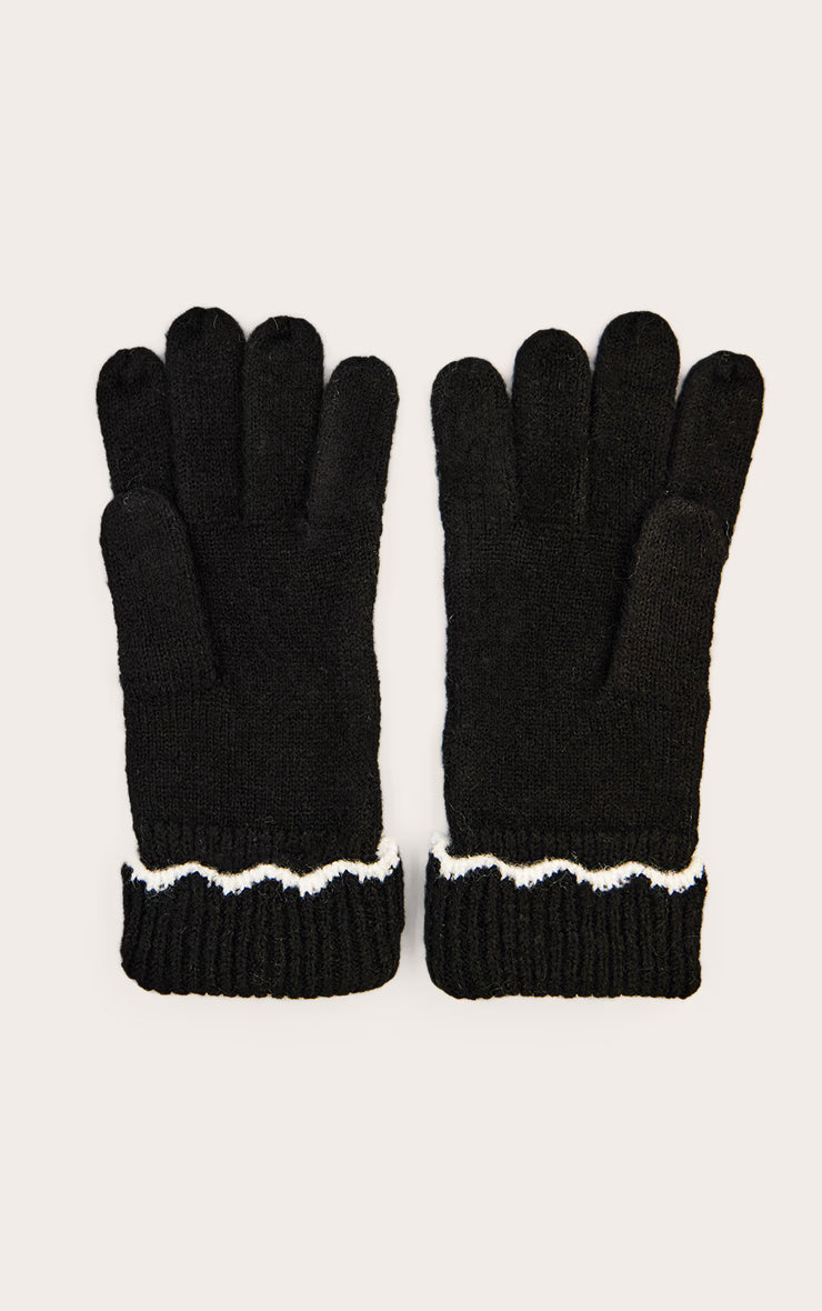 It's the subtle touches that truly define your aesthetic. These black with white scalloped trim gloves offer a knowing edge, distinguished by their sharp contrast scalloped trim at the cuff. Perfect for cool-weather styling, their sleek black design ensures a refined finish for any day agenda. Pair them effortlessly with a commanding tailored coat and neat pants for an elevated ensemble. Ground the look with chic ankle boots, then complete your statement with a minimalist black shoulder bag for a perfectly composed aesthetic that leads with confidence.