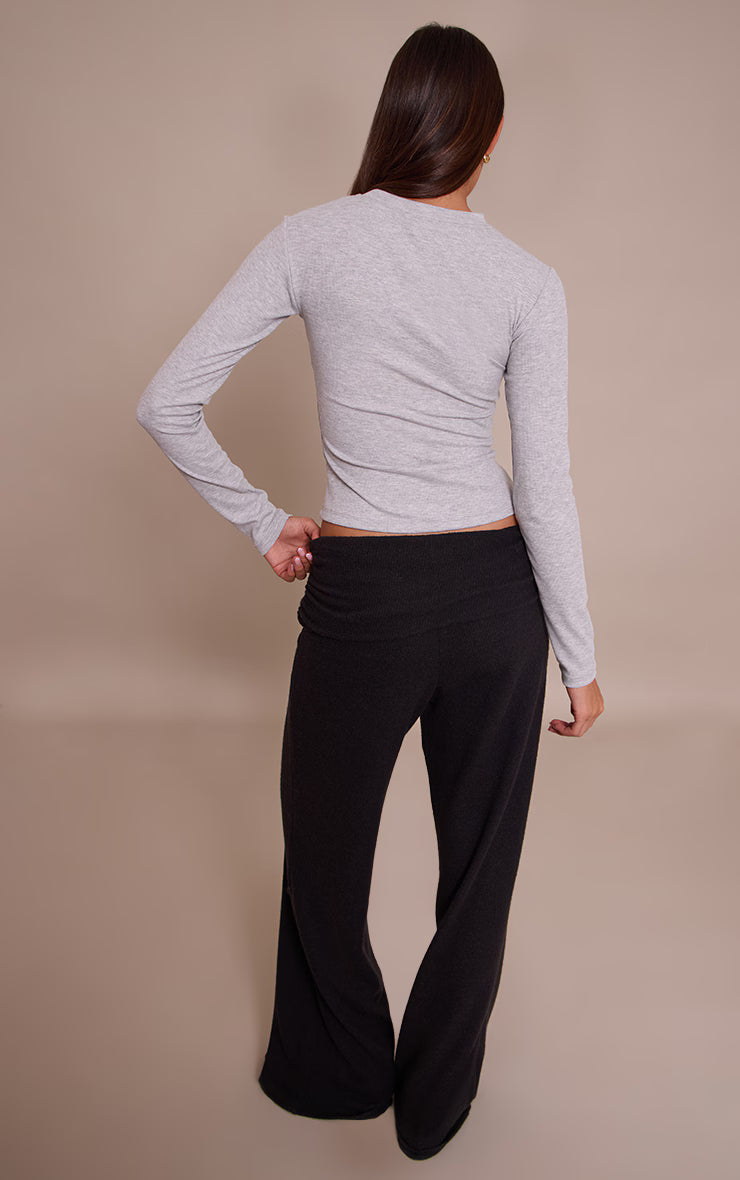 Let your everyday style speak volumes. The black wool look fold over straight leg pant is designed to be the foundation of your elevated casual wardrobe. Featuring a flattering fold-over waist that accentuates the silhouette, these pants offer a relaxed yet refined straight leg fit. Pair them with a fitted long-sleeve top and a sleek bomber jacket, finishing the look with chunky boots for an unbeatable edge. Add subtle gold stud earrings to elevate the ensemble effortlessly; this is how you master refined day dressing.