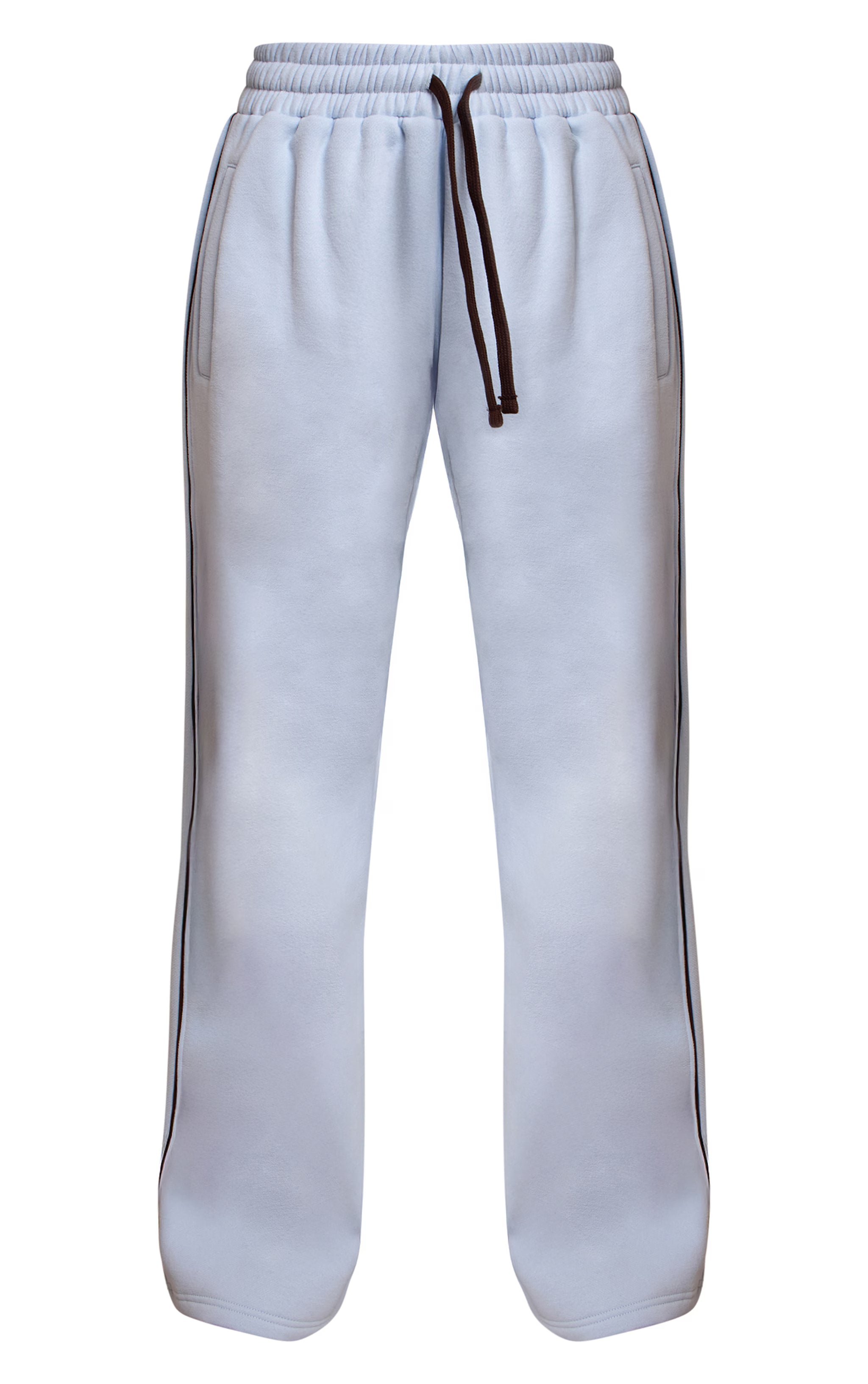 Shape your style with an elevated take on athleisure; these blue contrast wide leg sweatpants are designed for impactful day dressing. Featuring a relaxed, wide-leg cut that flows effortlessly, they boast a comfortable drawstring waist in a rich contrasting tone, echoed by subtle piping down each side seam for a sleek finish. Pair yours with a fitted crop top and the matching jacket for a cohesive vibe, or wear with an oversized tee for an understated cool. Ground the look with essential sneakers or some sturdy boots, completing the ensemble with minimal gold stud earrings for an artful touch.