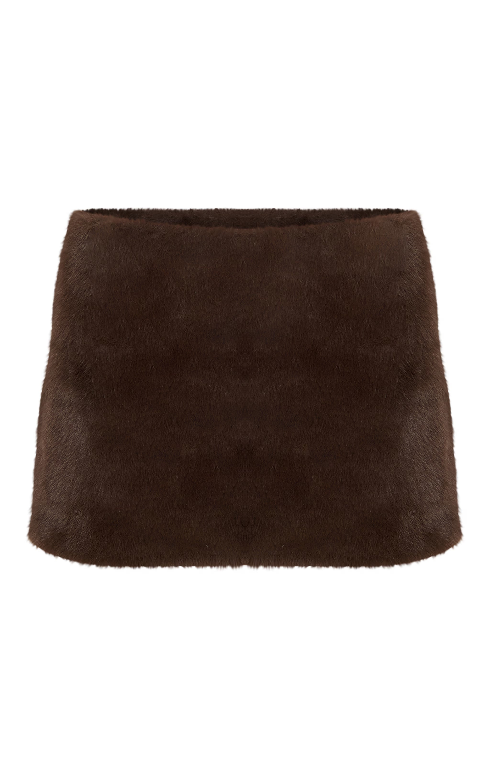 Make a statement in the brown fur mini skirt. Brought to you in a brown hue fur material with a standout mini length. This mini skirt is all you need to stand out from the rest. Simply style with a white vest top, a statement jacket and a pair of sunglasses to finish off the look.
