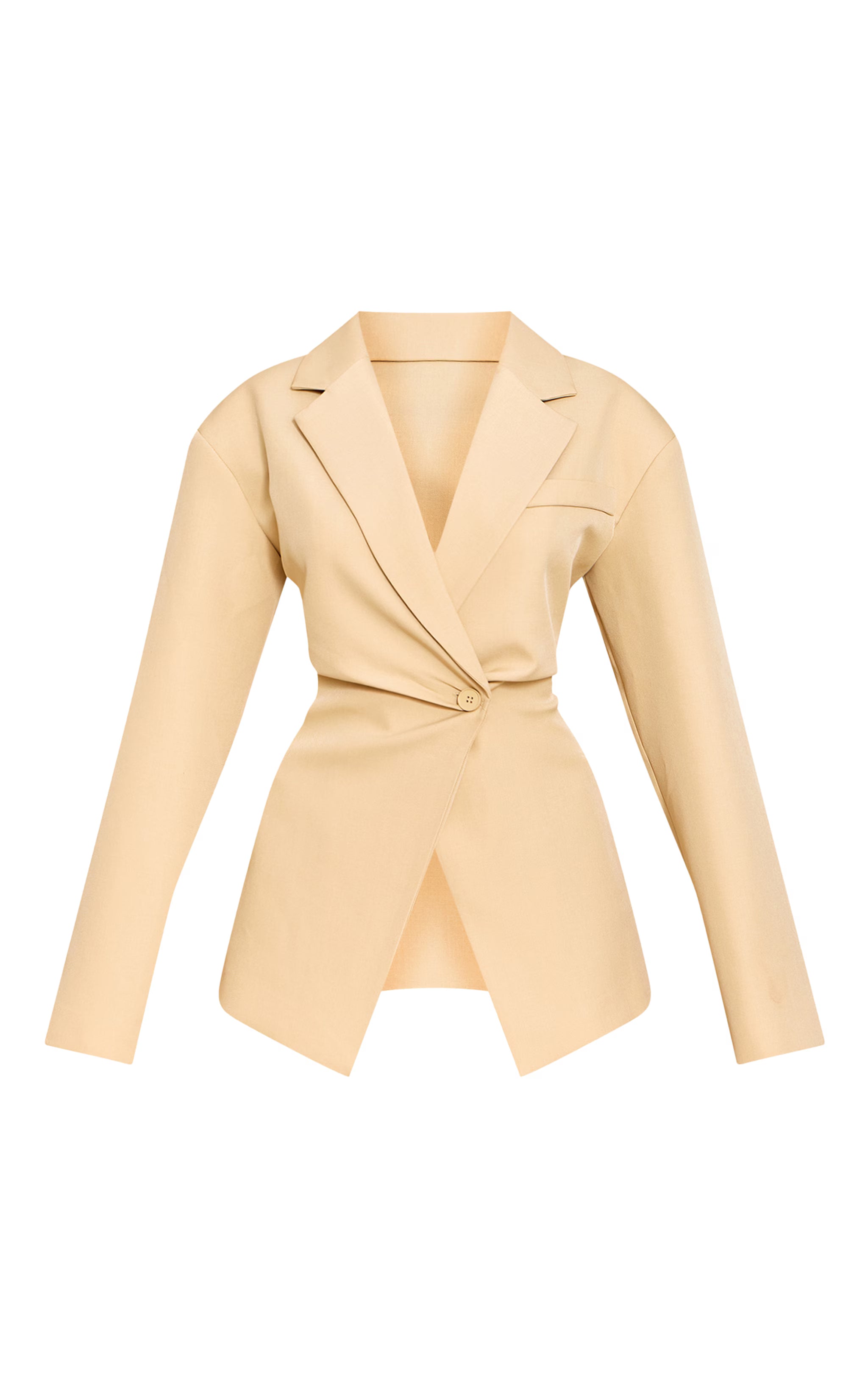 Keep it sleek in this butter cream tailored cinched waist blazer. Brought to you in a classic butter cream material with a tailored design and a cinched waist detailing. Team this blazer with a mini skirt and a pair of mule heels to finish off the look that will have you feeling confident this season.