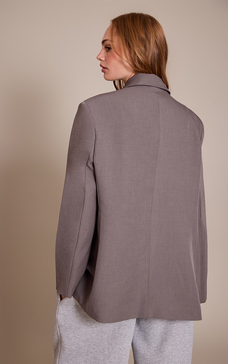 Elevate your everyday with the charcoal oversized blazer, a piece that offers effortless polish. This blazer features a classic notched lapel and double-breasted button fastening, creating a clean, sharp silhouette perfect for day-to-day styling. Pair it with tailored pants and step out confidently in nude heels, adding a waist belt to cinch the look.