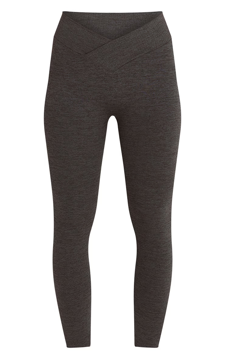 Complete your active look with the charcoal seamless marl cross front legging. Made from seamless stretch fabric in a marl finish, these leggings feature a flattering cross-front waistband for contouring and comfort. Style with the matching sports bra and zip jacket for the ultimate gym set.