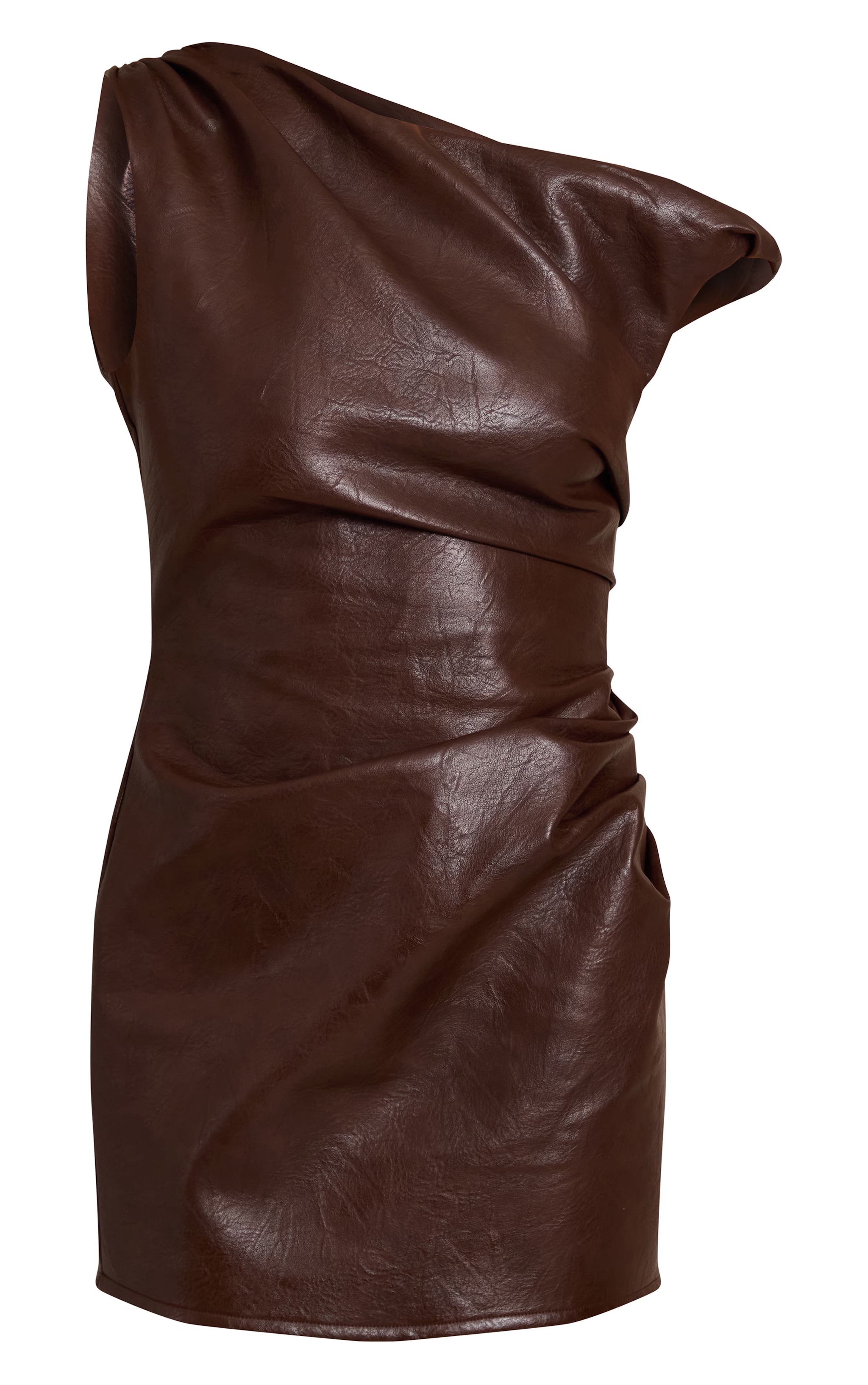 Opt for understated glamour in the chocolate asymmetric off the shoulder mini dress. Cut from slinky stretch fabric in a rich chocolate tone, this mini dress features an asymmetric neckline and a sculpting fit. Style with statement heels and a matching clutch for a modern, refined look.