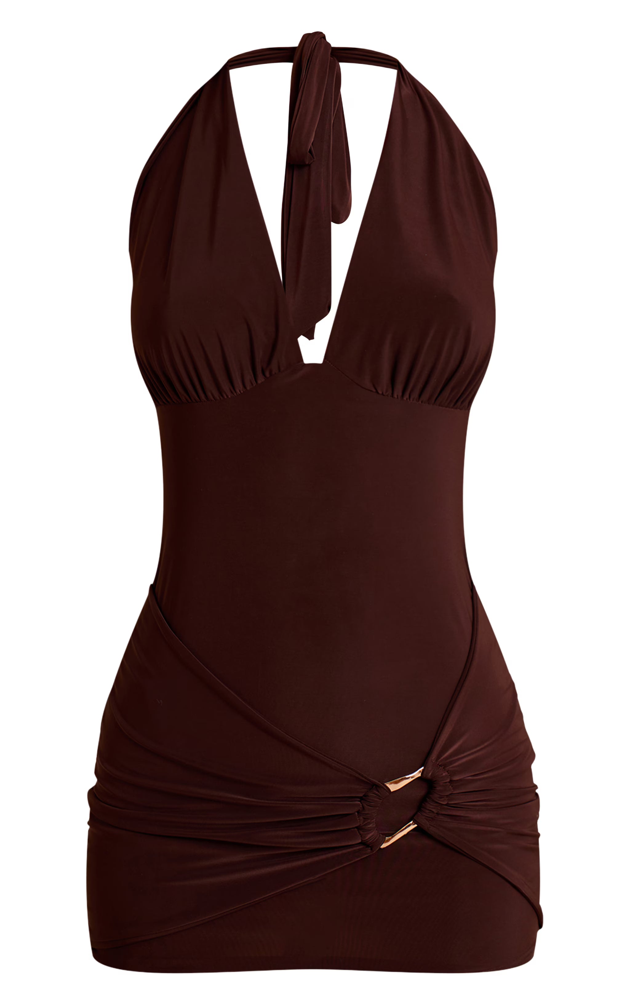 Step into sophistication with the chocolate plunge trim detail wrap mini dress. Made from silky chocolate-toned fabric, it features a plunging neckline, wrap silhouette, and delicate trim detailing for a refined finish. Pair with heels and statement earrings for an elevated evening outfit.