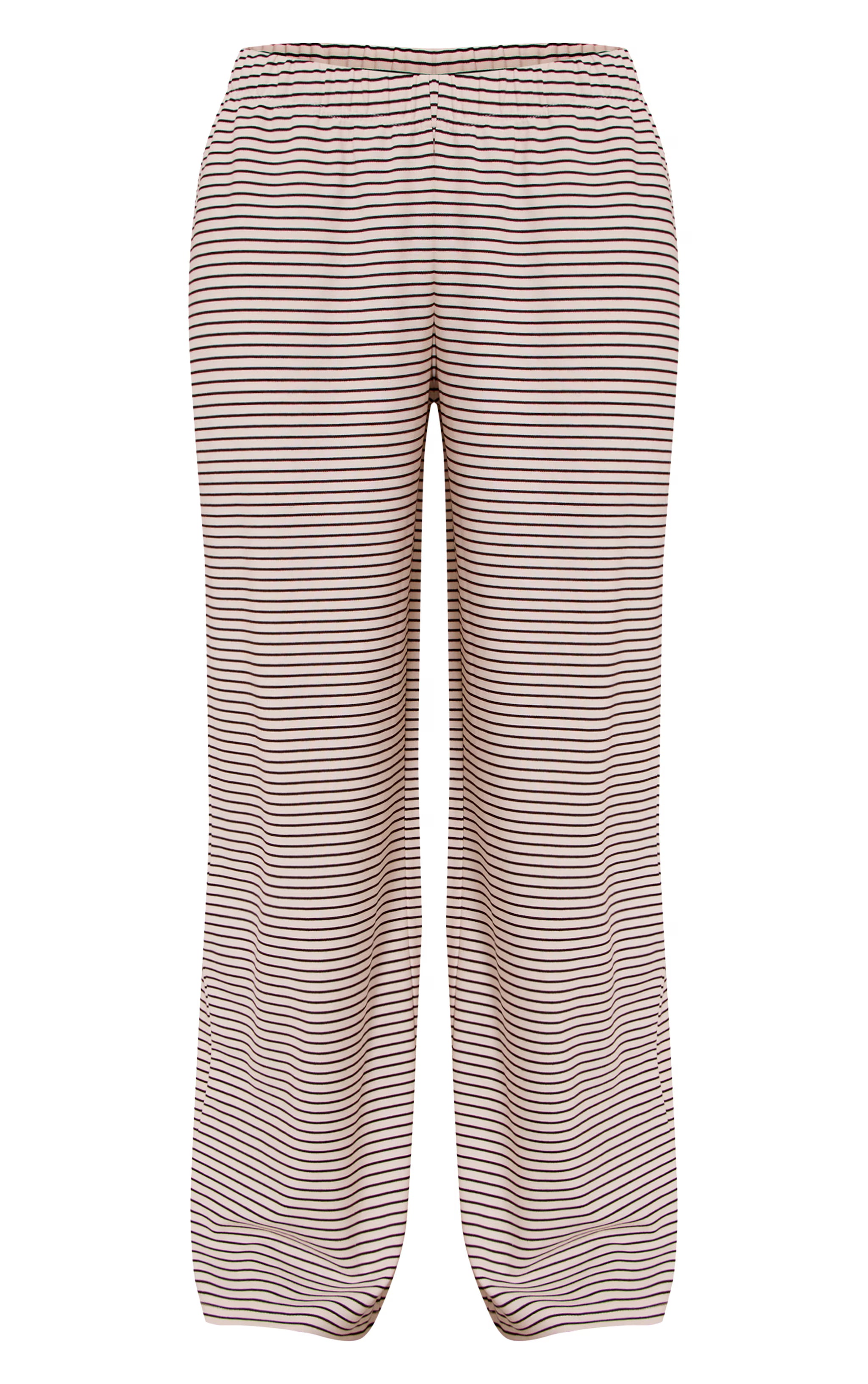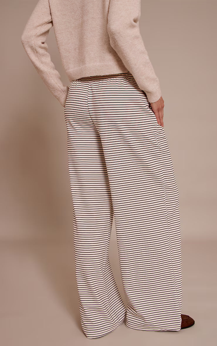 Effortless style starts from the bottom up with the chocolate stripe heavy cotton wide leg pants, a true statement in relaxed tailoring. These pants feature a confident wide-leg cut, an easy pull-on elasticated waist, and practical side pockets, all brought to life by a chic chocolate stripe design against a fresh cream backdrop. Pair them with a cropped knitted sweater for a cohesive, understated look, or add an unexpected edge with western boots and gold jewelry. Make these your go-to for an instantly polished, yet relaxed, vibe.