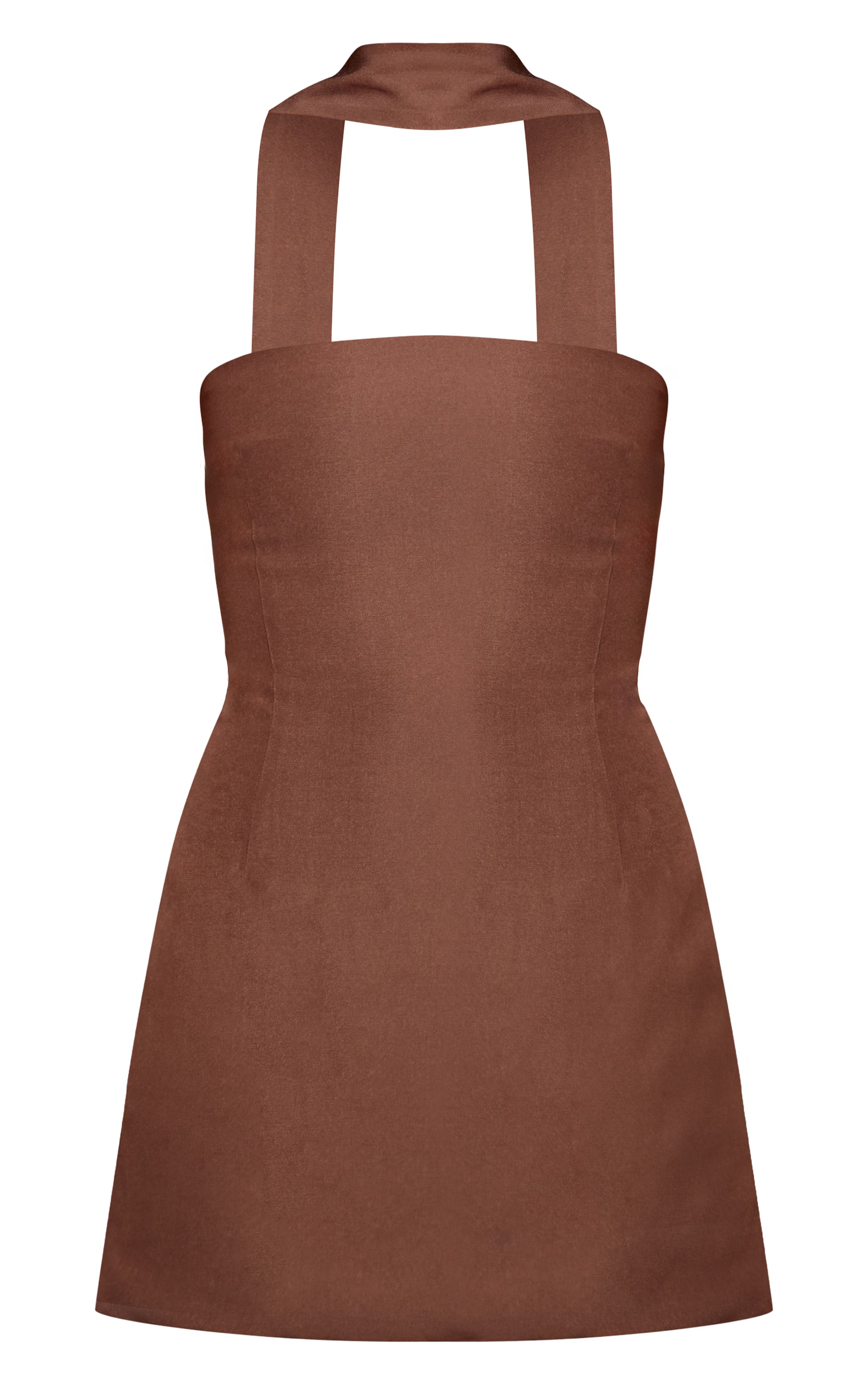 Own the spotlight with a knowing edge. The chocolate woven scarf detail bandeau shift dress captures attention with its sleek strapless cut, presenting a bandeau neckline that defines the décolletage. Its standout feature is the integrated woven scarf, artfully wrapping the neck and cascading as a dramatic, elongated sash down one side, offering a refined twist on the classic shift silhouette. In a rich chocolate hue, this mini dress is poised for any occasion demanding an undeniably confident statement. Complete the look with sophisticated clear heels and a touch of silver jewelry, ensuring every detail speaks to your elevated style.