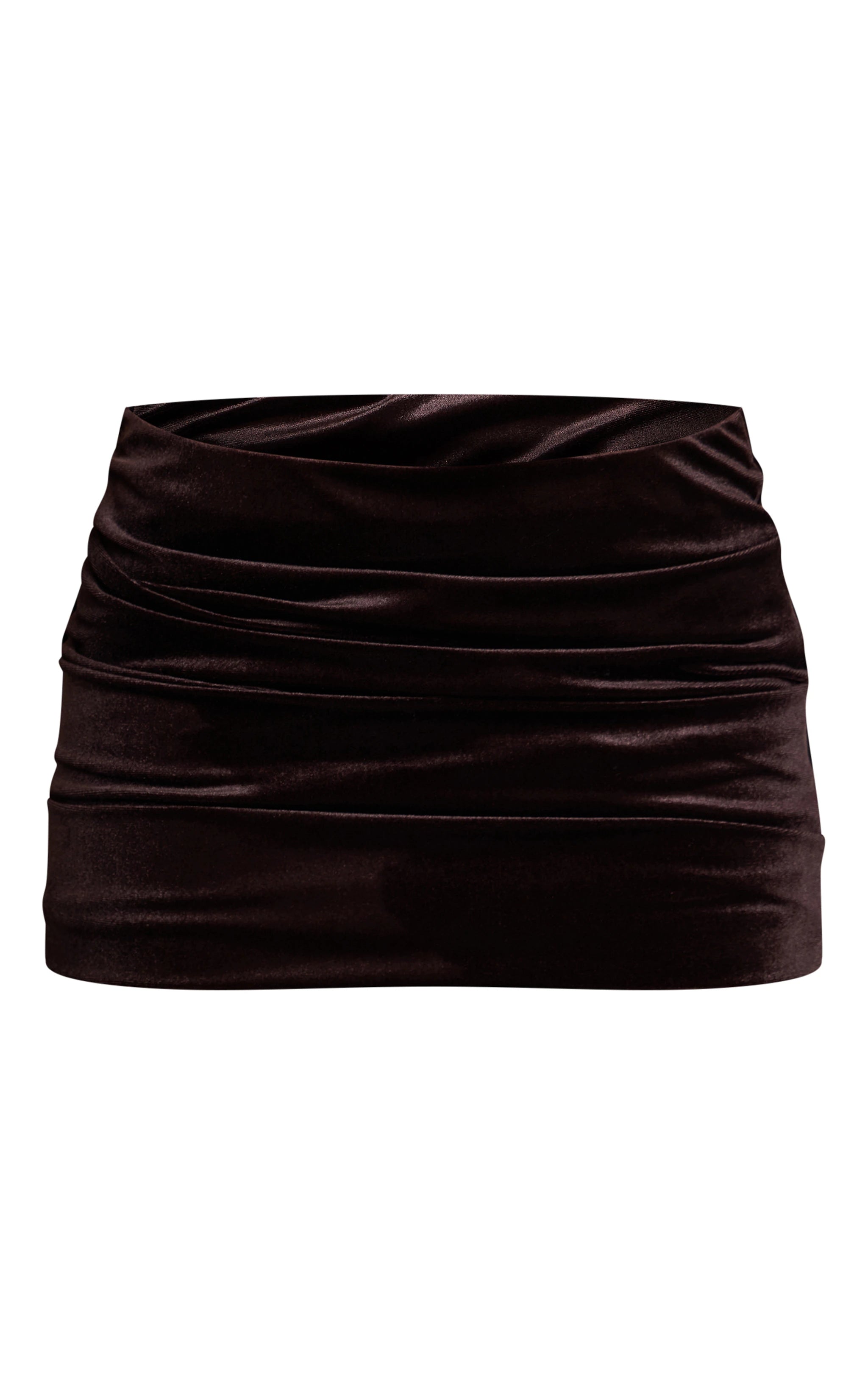 Make an effortless entrance in the dark brown velvet cowl neck knot long top, a piece tailored for confident evening wear. Its striking cowl neckline flows to a distinctive asymmetric hem, artfully sculpted by a side knot and secured with an elegant halter-neck design. This top ensures a polished and self-aware presence. Style yours with the coordinating mini skirt and sleek black heels, complementing the look with a selection of refined gold jewelry for an undeniable, knowing aesthetic that owns the moment.