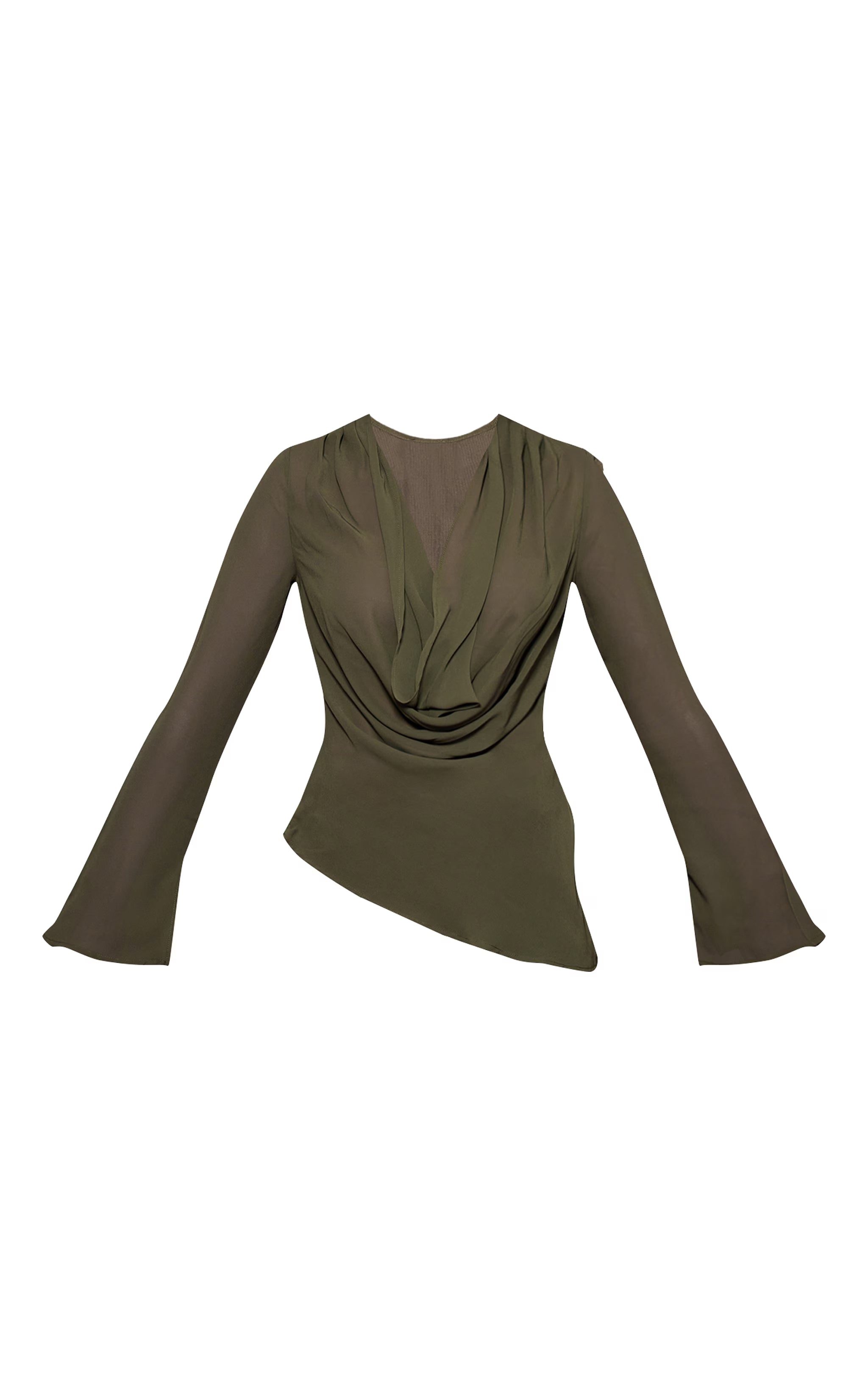 The dark green chiffon cowl plunge blouse is an elegant and versatile piece, perfect for both day and evening wear. The lightweight chiffon fabric drapes beautifully, while the cowl neckline adds a flattering, sophisticated touch. Pair with tailored pants or a skirt for a polished office look, or tuck into high-waisted jeans with heels for a chic evening outfit. The rich dark green hue complements gold or neutral accessories for an effortlessly refined style.