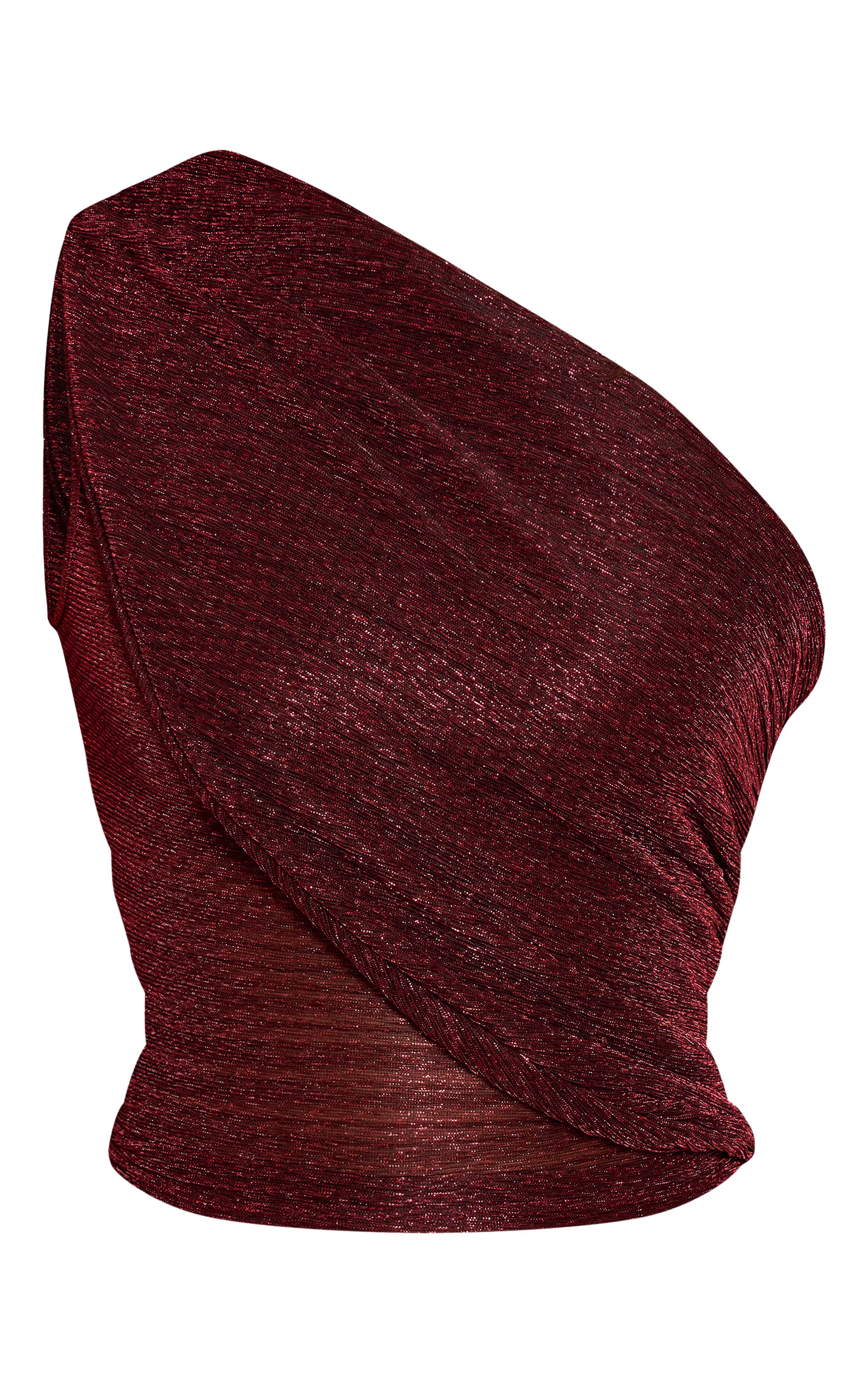 An evening impact begins with an artfully draped form. The dark wine glitter one shoulder ruched drape long top commands attention with its distinctive silhouette, where shimmering glitter meets a confident one-shoulder design. A modern ruching detail accentuates the form, flowing into an asymmetric drape that defines your presence. Pair this essential piece with its matching mini skirt for a cohesive two piece set moment, or elevate sleek black tailored pants for a refined contrast. Complete your ensemble with sophisticated closed toe heels and a pair of delicate gold earrings, ensuring an air of undeniable polish. This is your discerning choice for making a statement that lingers.