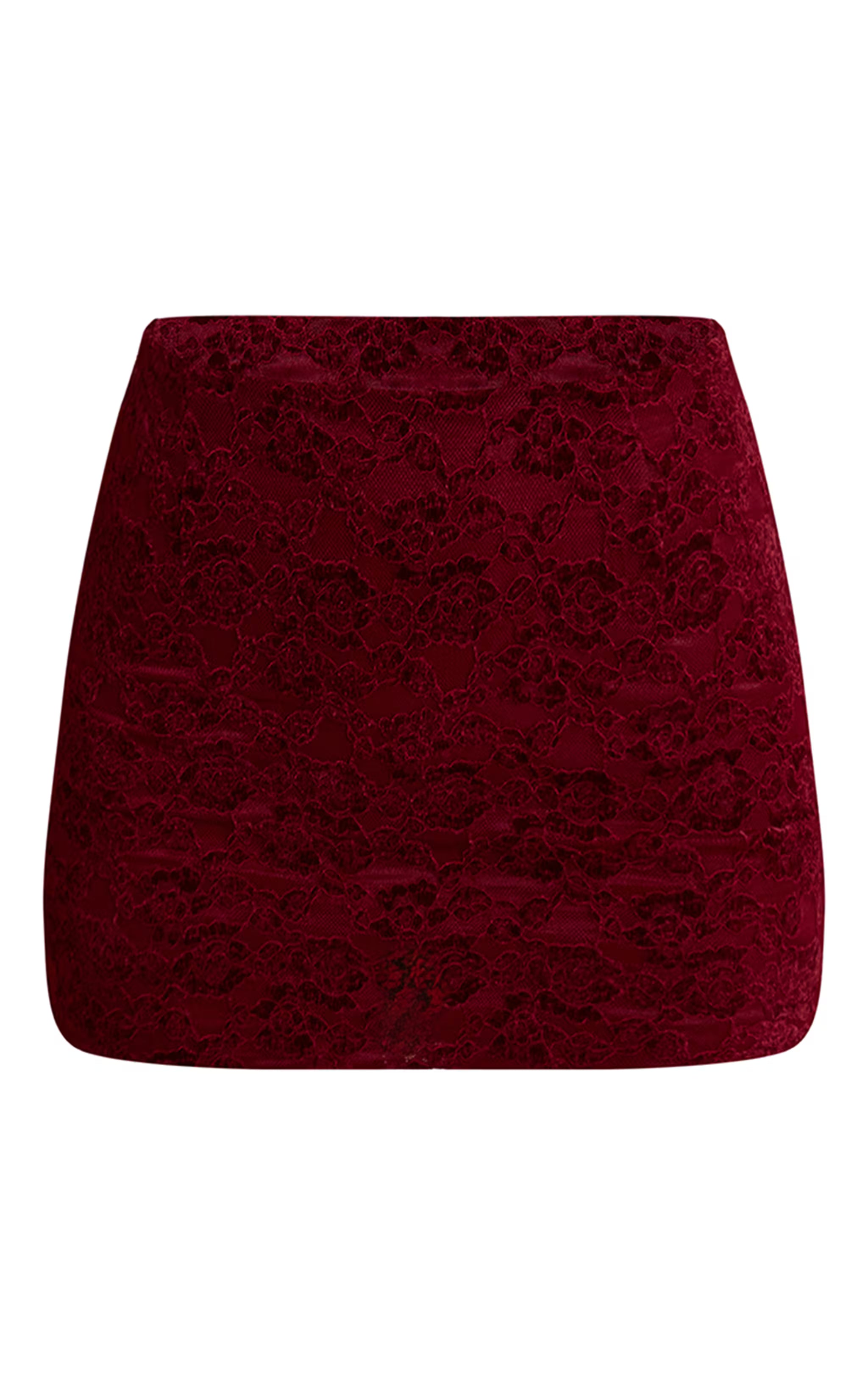 Complete your statement look with the dark wine lace mid rise mini skirt. Designed in intricate lace fabric in a rich wine tone, this mini skirt sits at the mid waist for a flattering fit. Style with the matching lace crop top and strappy heels for an elegant evening outfit.