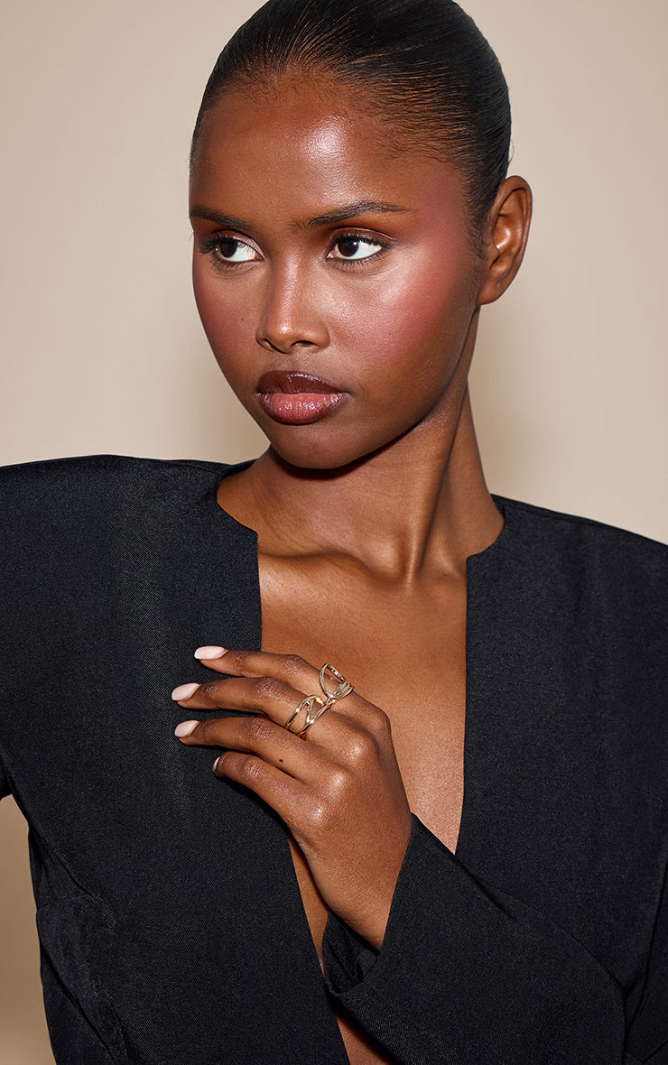 Master effortless evening style with a touch of artful shine. These gold abstract multipack rings feature an intricate, open design that brings a knowing edge to any look, perfect for a confident statement. Layer them with a sleek black dress and gold bracelets for a coordinated ensemble, finishing the vibe with a chic clutch bag and striking gold heels for an unforgettable evening out.