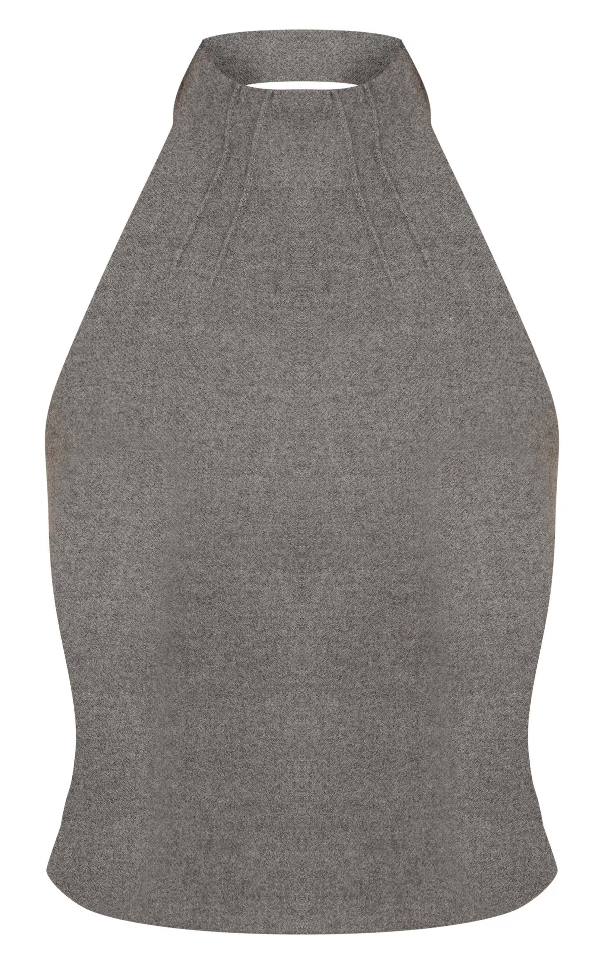 Add texture to your look with this grey brushed woven halter neck top. Brought to you in a brushed woven material with a soft grey tone hue and a halter design offers an elegant fit. Team with the matching mini skirt and boots for a coordinated vibe.