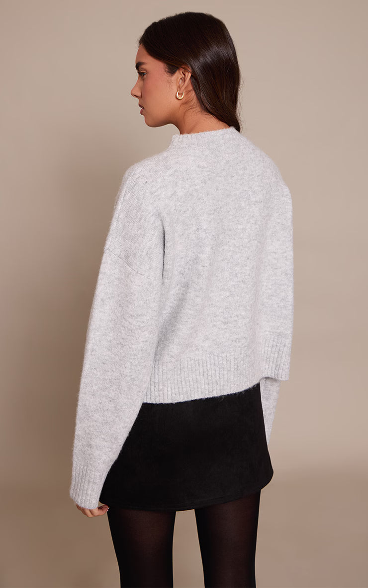 Effortless daywear gets a contemporary update with the grey marl knitted cropped crew neck sweater. This essential piece features a classic crew neckline and a modern cropped silhouette, finished with neat ribbed detailing at the cuffs and hem for a clean line. Perfect for teaming with high-waisted pants for a refined daytime look or a mini skirt for a more youthful edge, ground your aesthetic with sleek boots and finish with minimal gold stud earrings for an understated polish. It's a versatile foundation for a confident, understated style.