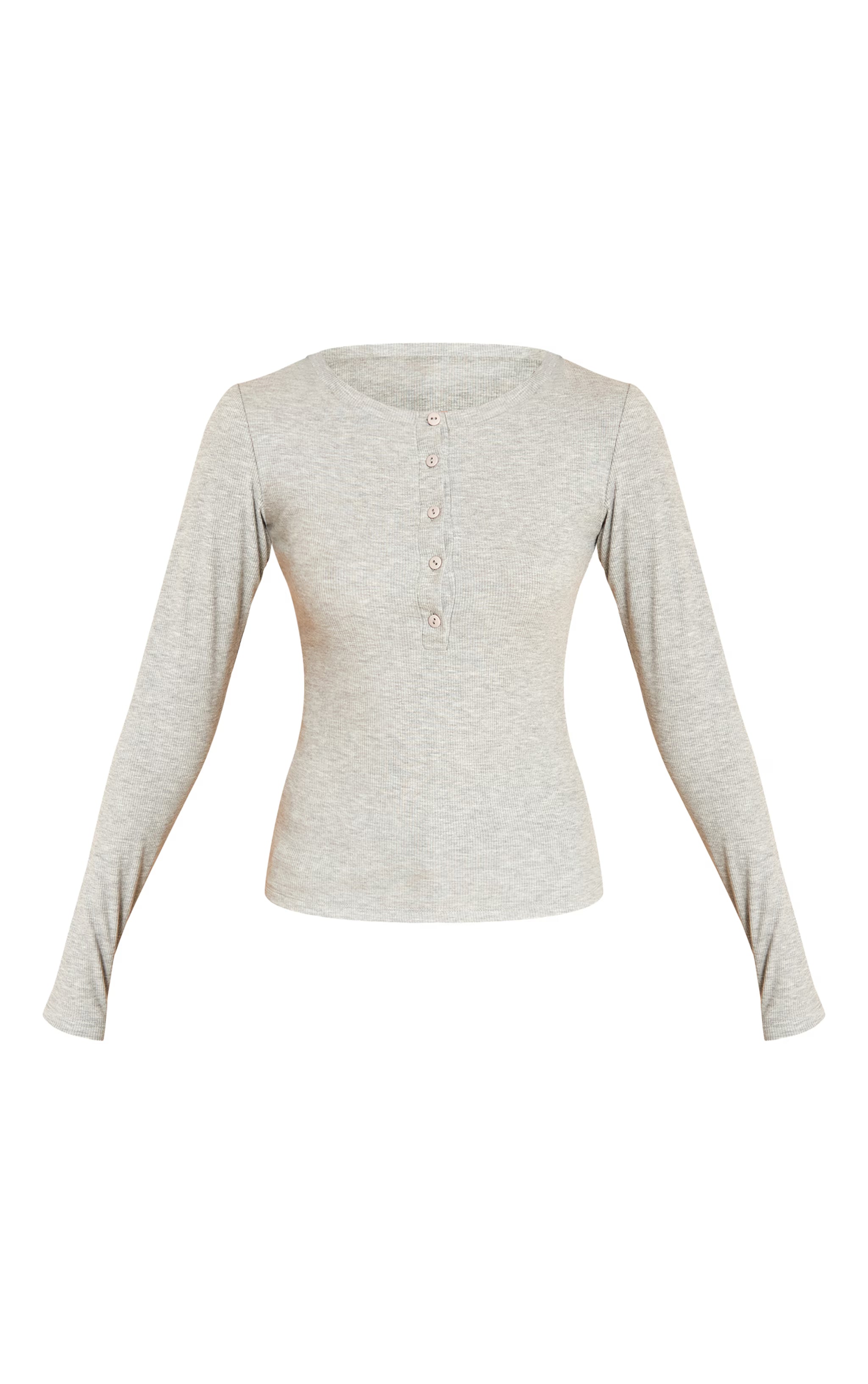 The grey marl soft rib button up fitted long sleeve top blends comfort with casual sophistication. Its ribbed texture and button-up design make it a versatile layering piece. Team it with wide-leg pants or denim for a clean, relaxed aesthetic.