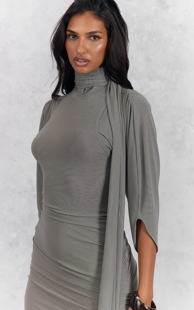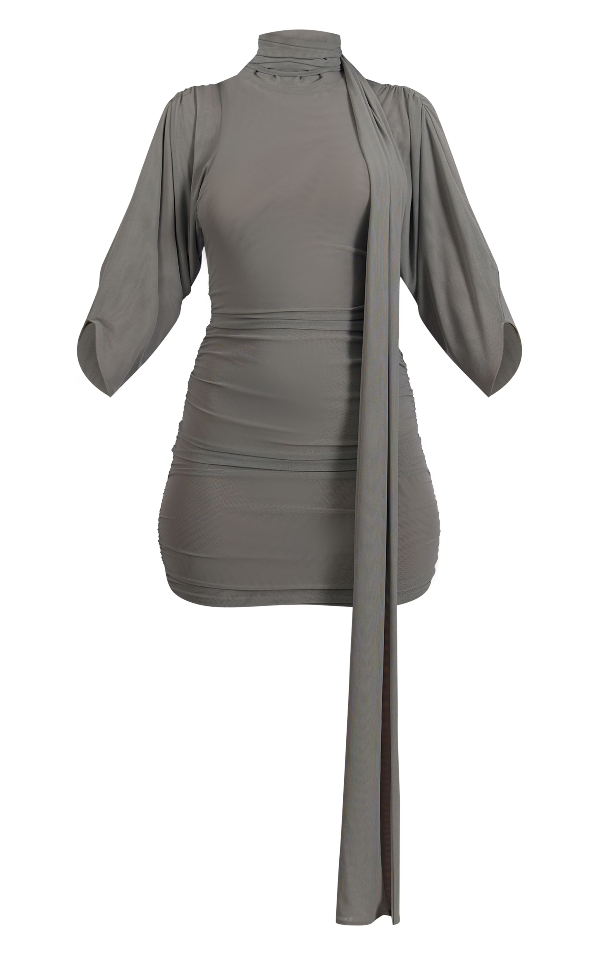 Exude modern chic in the grey ruched wrap bodycon mini dress. Designed in a grey fabric, it features a ruched finish, wrap silhouette, and a flattering mini length. Perfect for evenings or dressed-up days, this piece offers effortless sophistication. Team with kitten heels and gold earrings for a flawless finish.