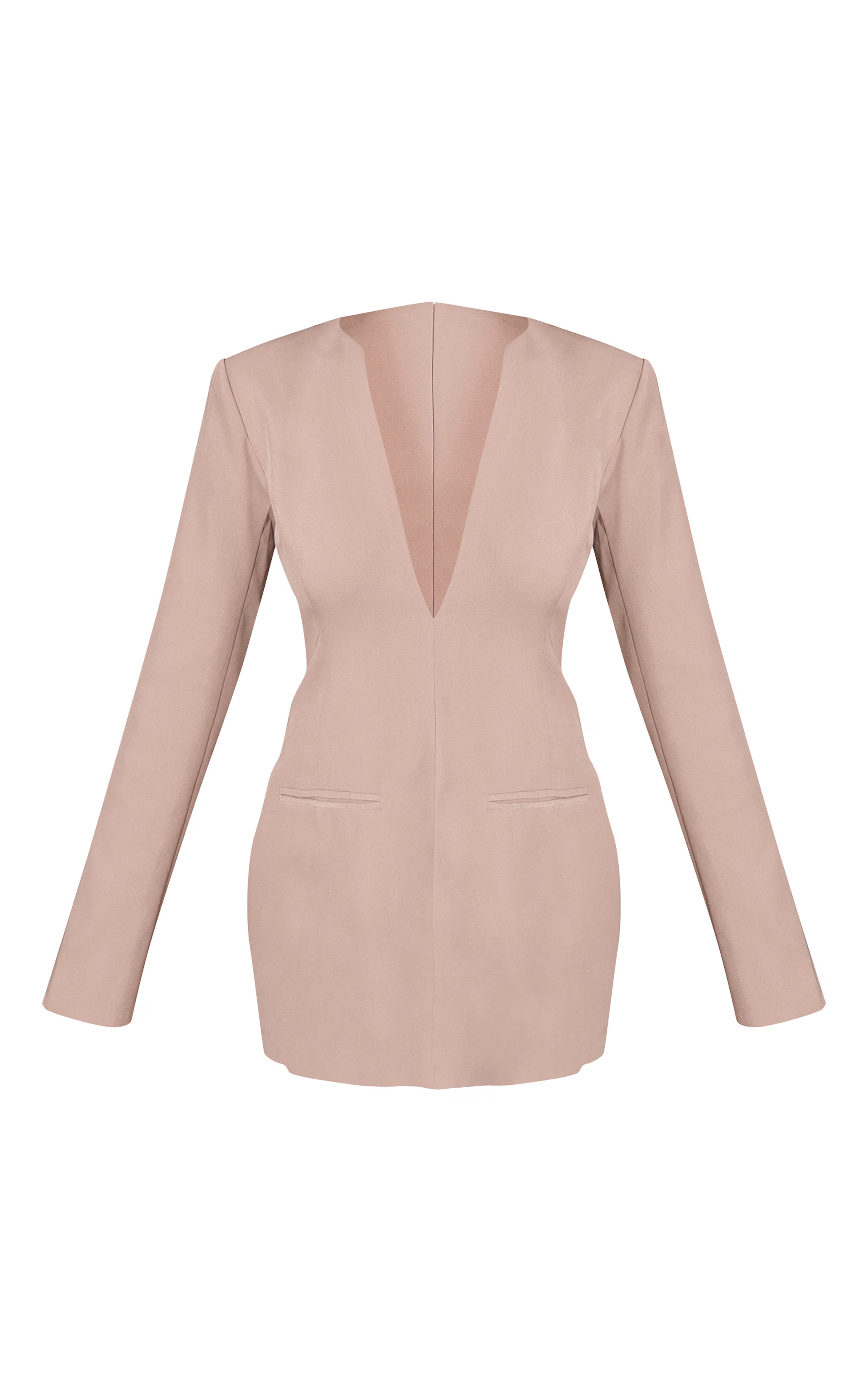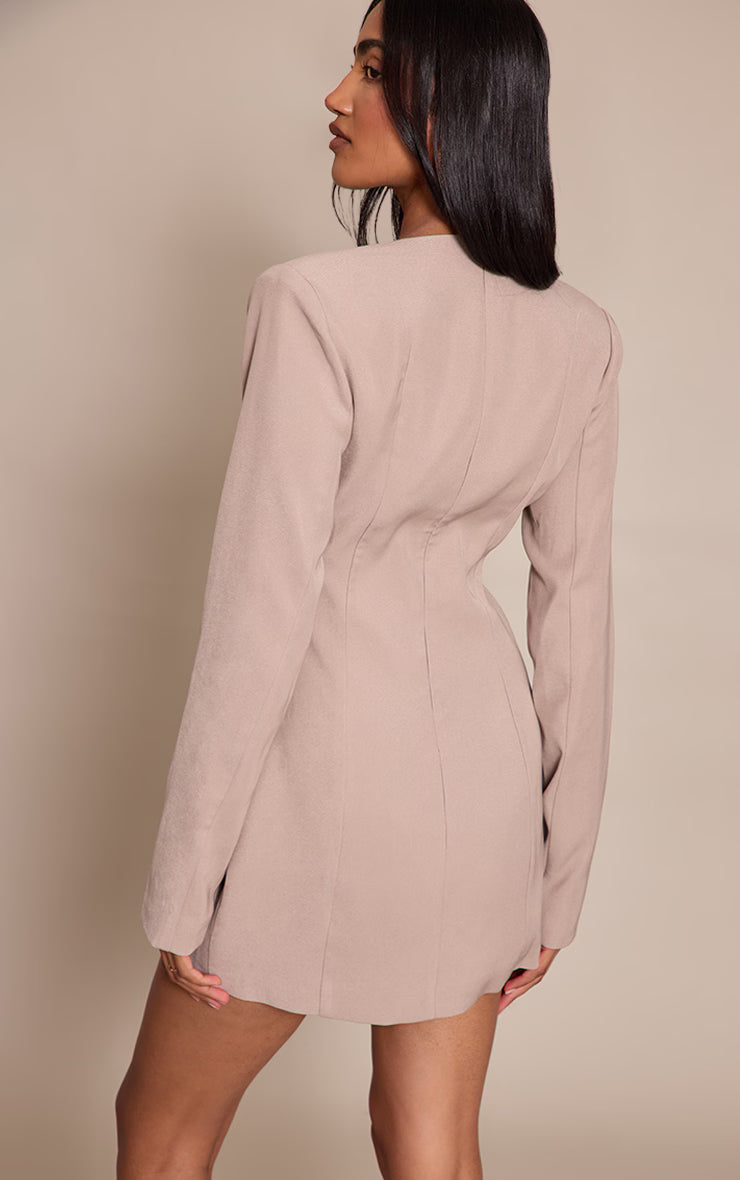Project undeniable confidence in this artfully constructed grey woven v neck long sleeve mini dress. The deep V-neckline delivers a direct statement, balanced by structured shoulders and long sleeves that taper cleanly to the wrist. Its precision tailoring creates a sleek, close-fitting shape that commands attention, finished with subtle faux pocket details that add a refined edge. For evening, ground this knowing look with sharp black heels, then finish with minimal gold stud earrings to maintain the focus on its bold design. An undeniable choice for those who dress with intent.
