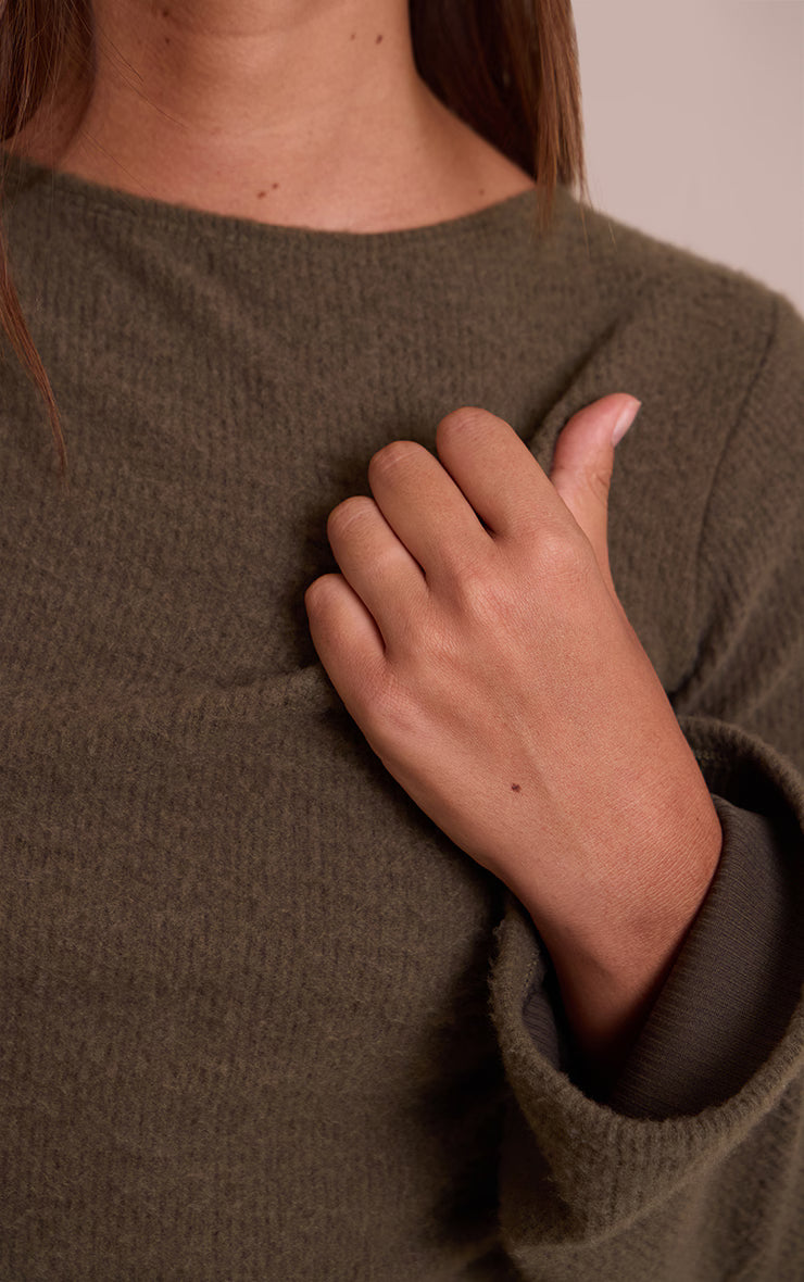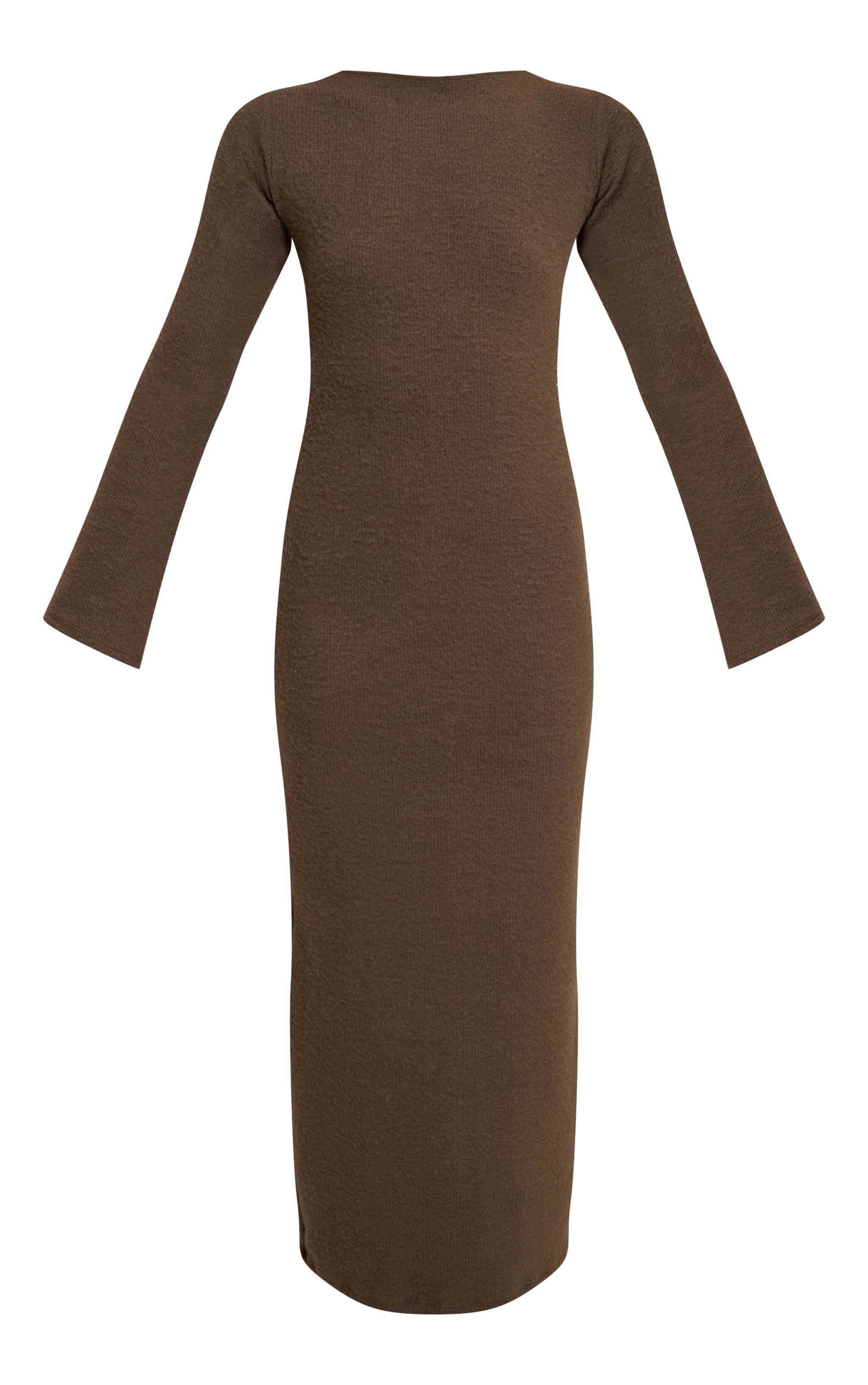 Own the day with artful ease. The khaki brushed tie back long sleeve maxi dress presents a confident, elongated silhouette, featuring a refined round neckline and elegant long sleeves that end with a subtle flare. Its clever tie-back detail adds an unexpected touch, ensuring a polished finish from every angle. For a fashion-forward day look, pair this shift dress with sleek mid calf boots, completing the ensemble with subtle silver jewelry to maintain an effortlessly put-together aesthetic. A knowing choice for confident style that transitions seamlessly.
