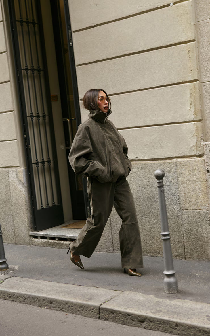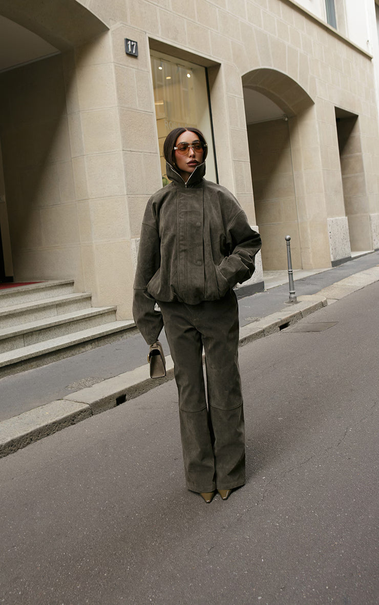 Tao into your luxe side with these khaki suede straight leg pants. Brought to you in a khaki suede material with a tailored straight leg design and buttery suede finish, these pants are perfect for day-to-night styling. Just add to your outfit of the day or with the matching Biker jacket for a sleek two piece set.