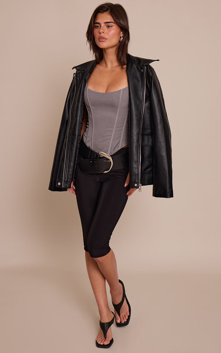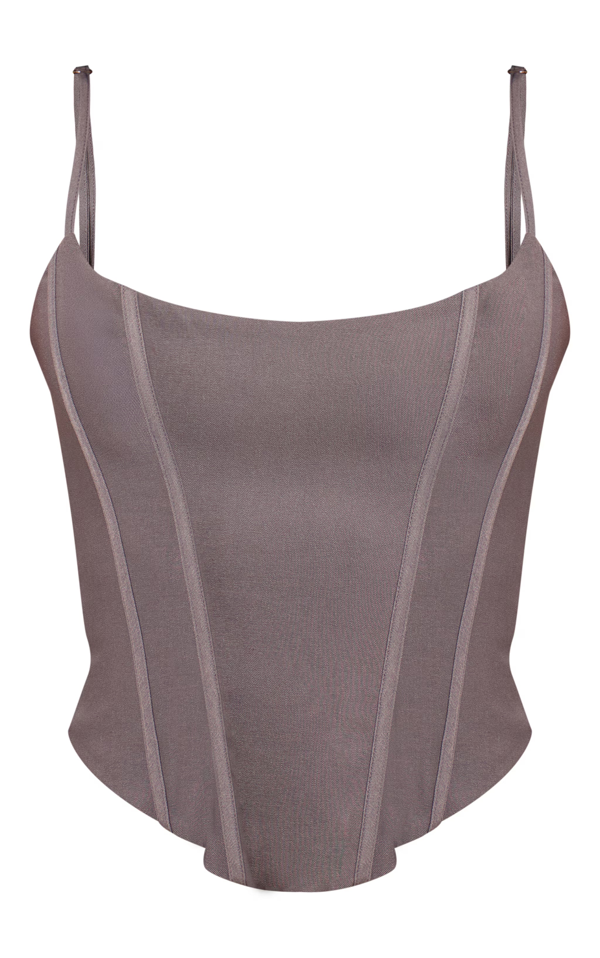 The light grey woven boned thin straps corset offers a refined, structured silhouette with a soft tonal palette. The boned detailing provides support and shape, while the minimalist straps add elegance. Style with wide-leg pants and pointed heels for a chic, balanced look or layer under a blazer for modern tailoring.