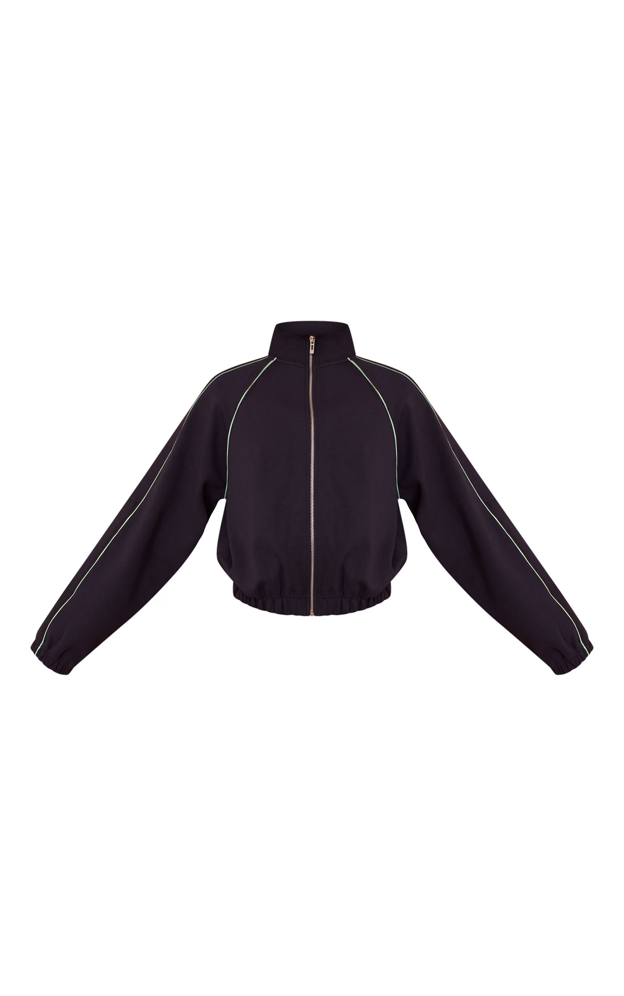 Introduce a retro-inspired touch with the navy interlock contrast piping bomber Sweatshirt. Constructed from smooth interlock fabric in navy, it features white piping detail and a relaxed bomber-style fit. Pair with matching sweatpants and chunky sneakers for a sporty, contemporary look.