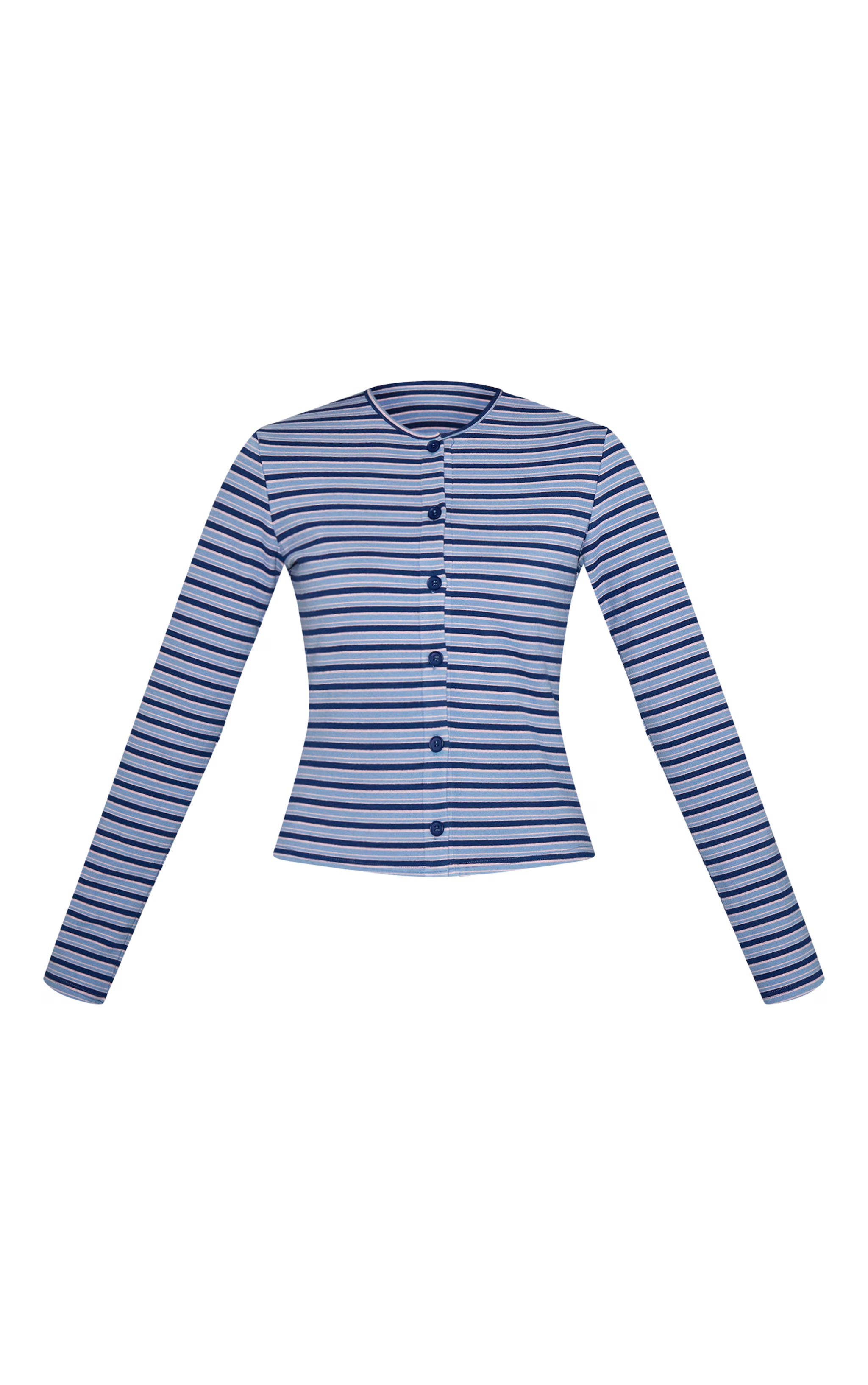 Perfect your daily rotation with pieces that speak volumes. The navy soft fleece pinstripe button up top brings an assured sense of style, cut with a clean round neckline and a full button-through front, accentuating its long-sleeved form. This top, featuring subtle pinstripes in varying shades of blue, offers a refined choice for day. Coordinate seamlessly with the matching wide-leg pants for a cohesive ensemble, then finish the look with sleek boots and understated gold hoops for a confident aesthetic that owns the room.