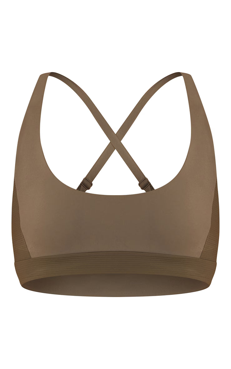 The olive sculpt rib panel strappy sports bra provides stretch, support, and a stylish edge. Its strappy back design makes it perfect for layering or showing off under gym tops. Pair with the matching yoga flares for a coordinated workout set or style under an oversized jacket for casual streetwear.