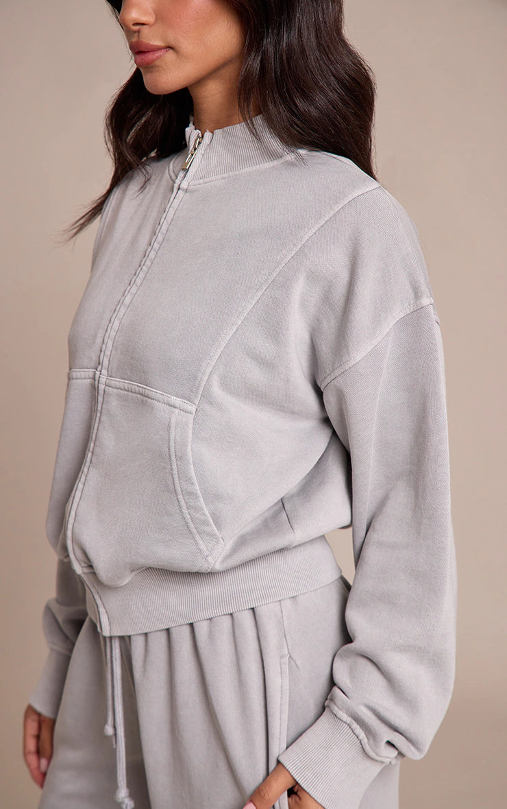 Introducing the petite ash grey acid wash funnel neck zip Sweatshirt. Brought to you in ash grey toned material, this Sweatshirt has a zip fastening, pockets and a funnel neckline. Add a simple tee and the matching sweatpants for an unforgettable look.