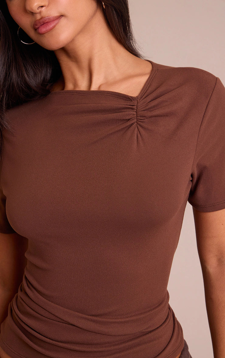 The petite chocolate super soft twist detail cap sleeve top combines comfort and femininity with its twisted front and flattering fit. Pair with high-waisted jeans and heels for an elevated casual look or tuck into a midi skirt for dinner-ready style.
