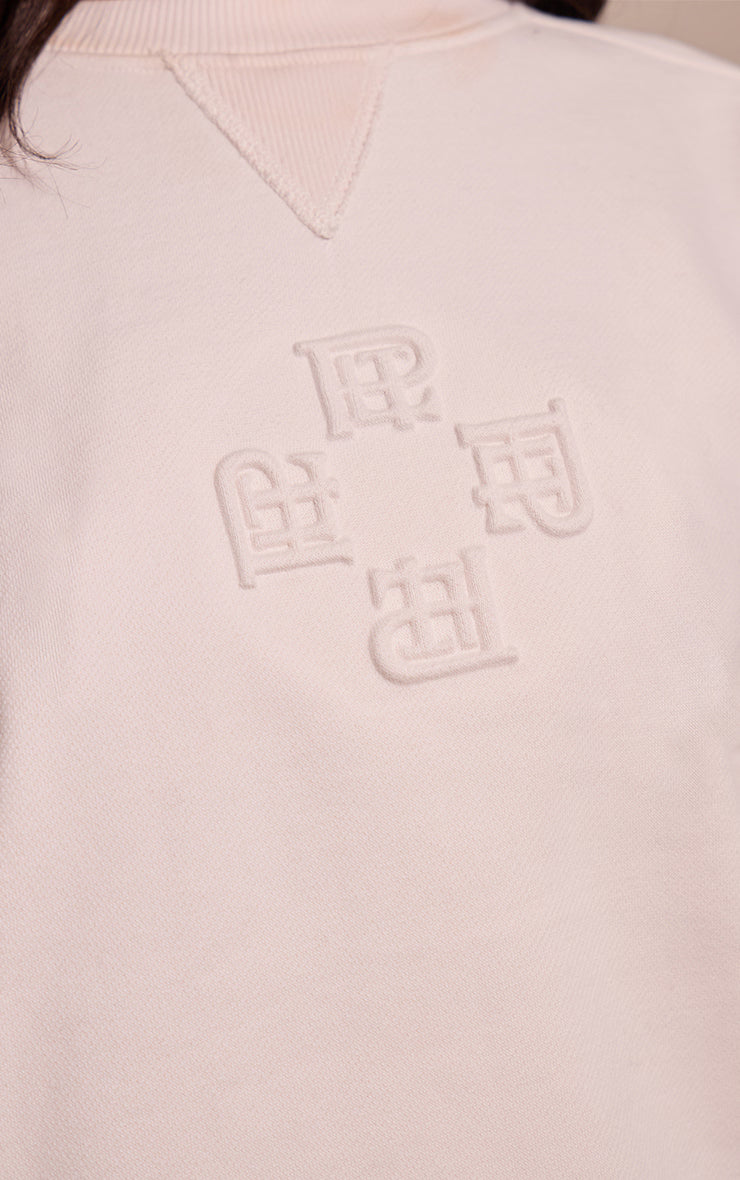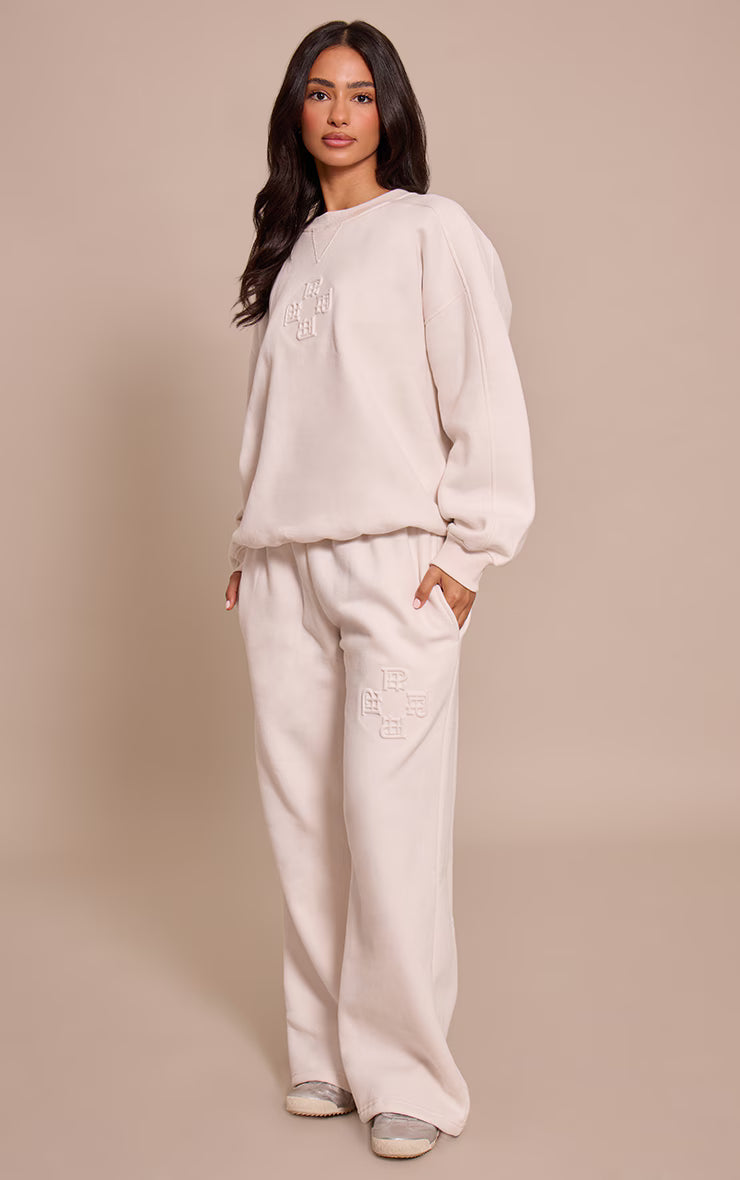 Own the relaxed aesthetic with knowing confidence. The petite cream plt embossed crew neck Sweatshirt is an essential for your curated daywear collection. It features a classic crew neckline and an effortlessly oversized cut, detailed with a subtle PLT embossment at the chest for an understated signature. This versatile piece pairs perfectly with matching bottoms for a cohesive loungewear statement, or elevate your look by styling with sleek tailored pants and gold heels. Complete the ensemble with chic gold hoops for an unexpected blend of comfort and polished edge.