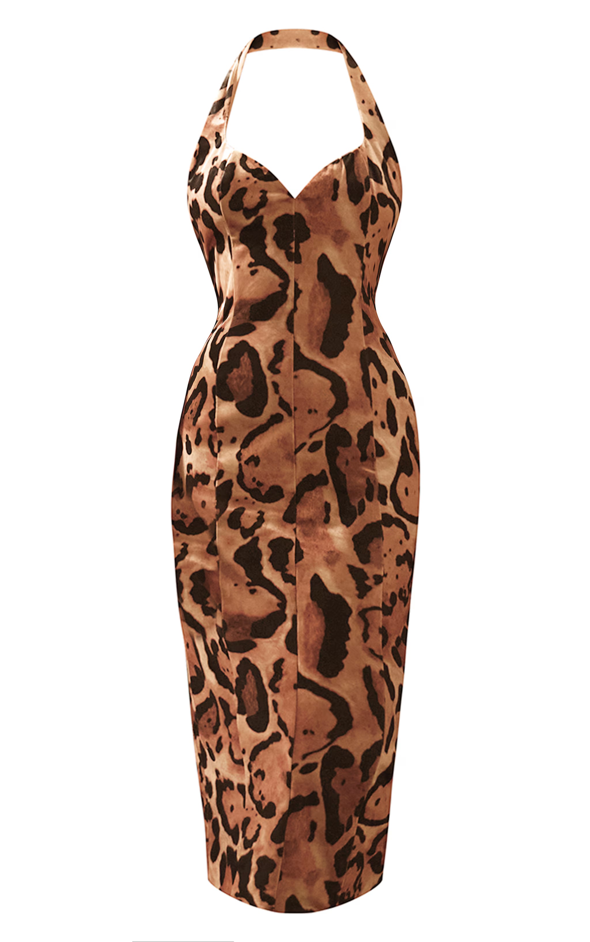 Stand out in the plt label multi leopard printed velvet halterneck midaxi dress. Designed in soft velvet with a bold leopard print and halterneck silhouette, it’s effortlessly chic. Style with metallic heels and a sleek clutch for polished night-out style.