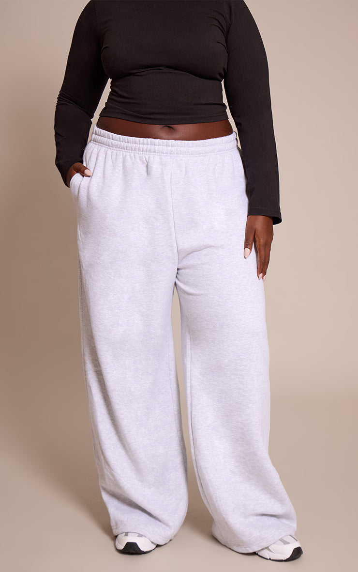 Redefine your casual collection with the ultimate plus ash grey straight leg sweatpants, a pair designed for a relaxed yet elevated aesthetic. These sweatpants boast a flattering straight-leg cut and a comfortable elasticated waistband, complete with practical side pockets that create an effortless wide-leg silhouette. Team them with a fitted crop top and fresh sneakers for a contemporary daytime look, or elevate the ensemble with a sharp blazer and chic black ballet flats, finishing with striking hoops, to carry your style from day to dusk with ease.