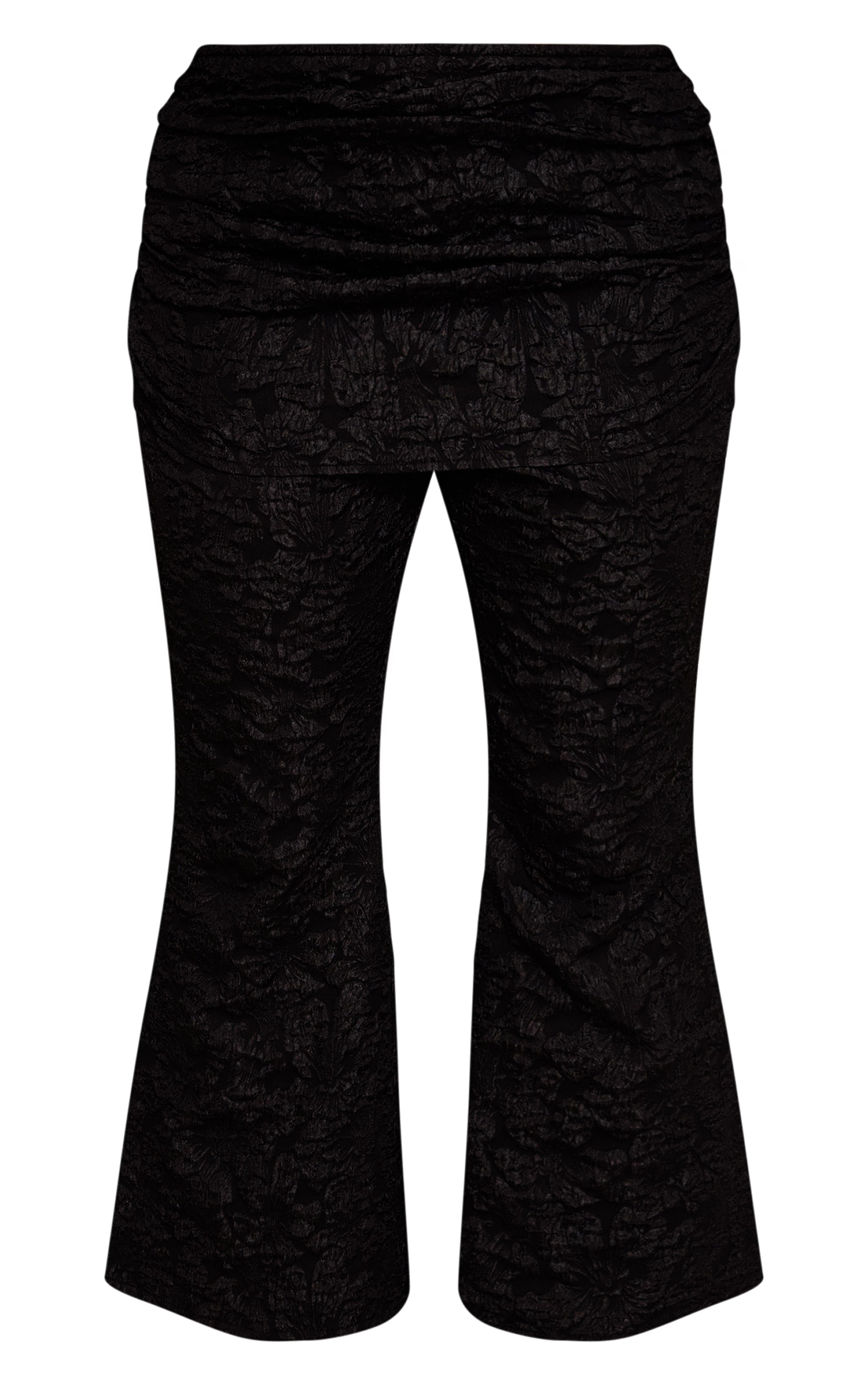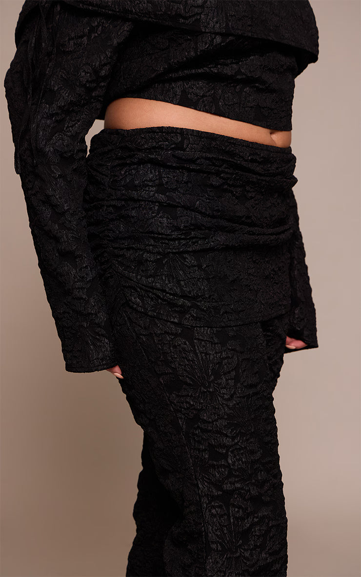 Step into your power in these plus black floral jacquard fold over wide leg pants, designed to make an impact. The subtle floral jacquard pattern lends a refined texture to the striking wide-leg silhouette, while the chic fold-over waist detail offers an effortlessly modern profile. Team them with a coordinating cropped top or a minimalist camisole to complete a cohesive ensemble. Cinch the look with sleek black block heels and an understated slouchy clutch bag, ensuring a confident finish for any occasion. This pair guarantees you’ll own every room you enter.