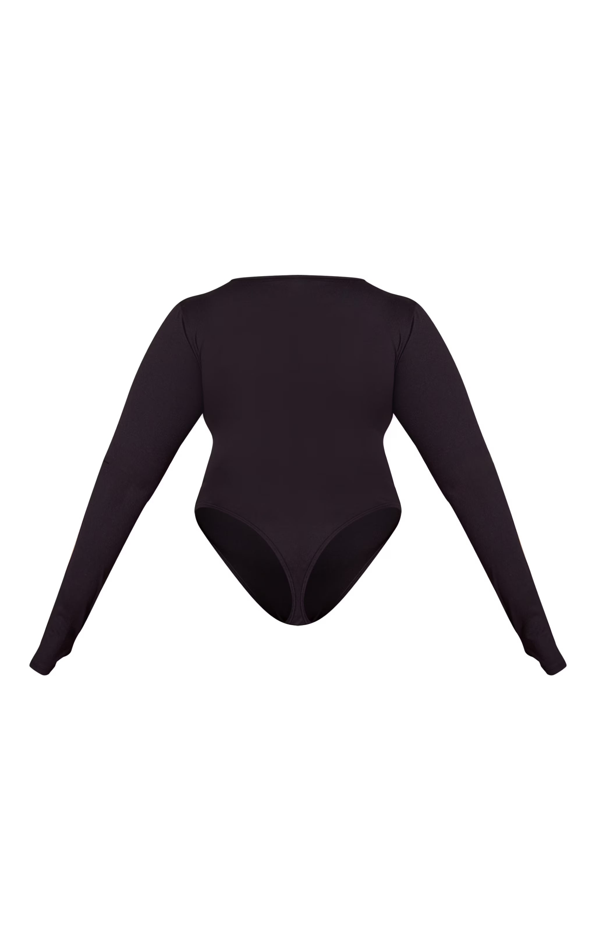 The plus black sculpt long sleeve bodysuit delivers a seamless, flattering fit perfect for layering. Tuck it into wide-leg pants for a streamlined look or wear with a leather skirt and boots for evening edge.