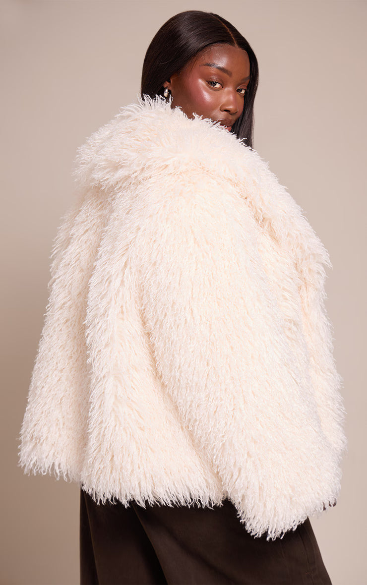 The forecast calls for elevated style. Presenting the plus cream mongolian fur midi coat, a knowing choice with its voluminous, shaggy profile and generously proportioned collar that frames your look with immediate distinction. This midi length outer layer layers with ease over tailored pants and a fine knit sweater for a polished daylight appearance. Ground your ensemble with sleek block heels and bold statement earrings, ensuring a poised finish that leaves a lasting impression.