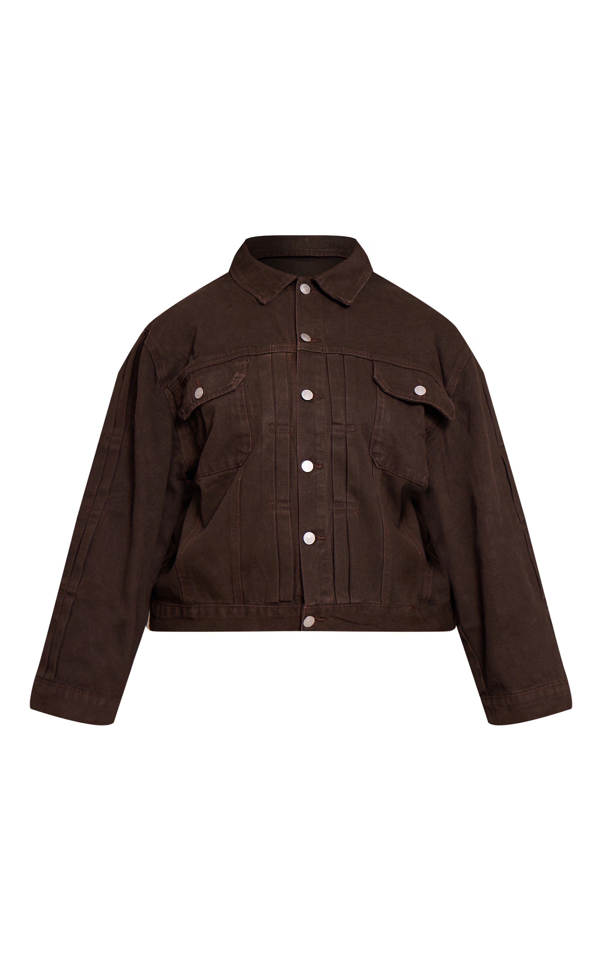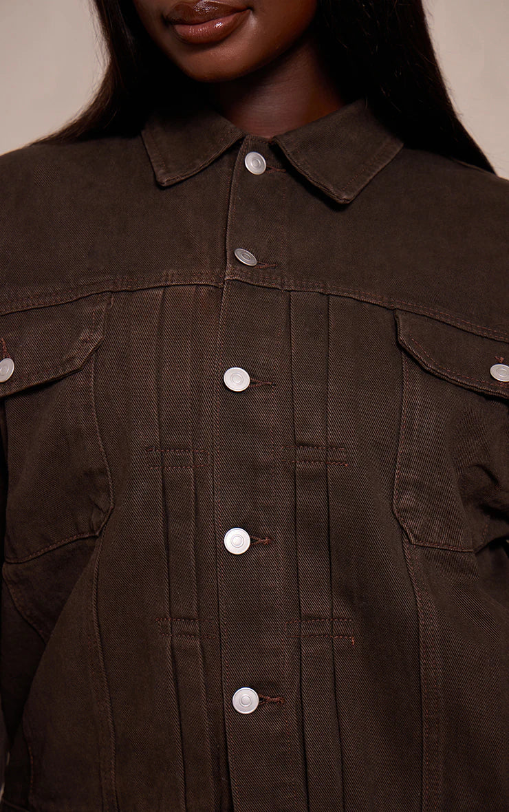 Add structure to your outerwear with the plus dark chocolate pleat detail boxy denim jacket. The pleat accents and boxy cut bring a contemporary edge. Throw it over a bodycon midi dress and boots for day-to-night wear, or layer with matching chocolate denim jeans for a statement double-denim moment.