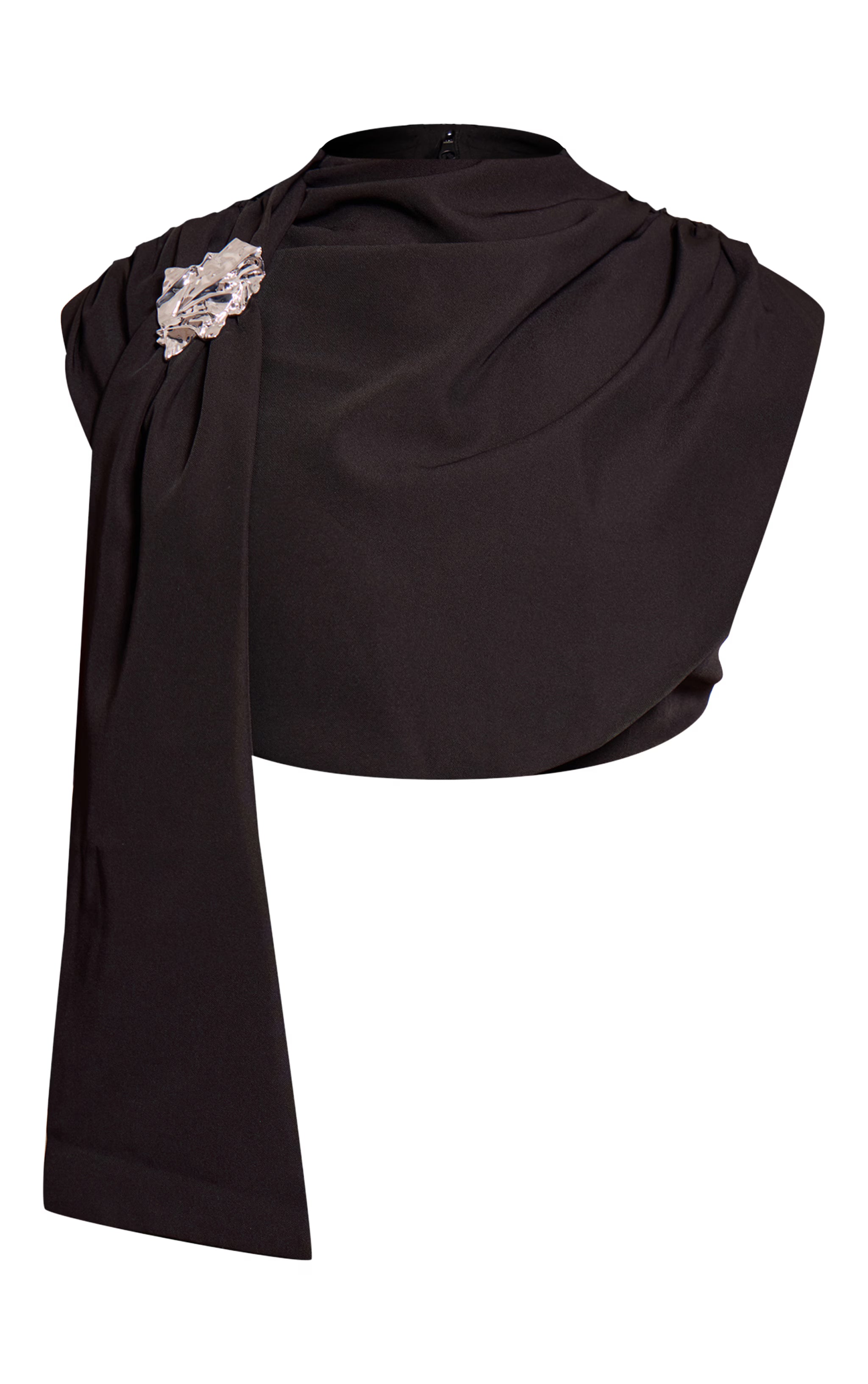 Elevate your edit with the plus premium black woven trim detail draped crop top. Featuring structured woven fabric with draped detailing, it’s chic and versatile. Pair with the matching fishtail skirt for coordinated evening styling.