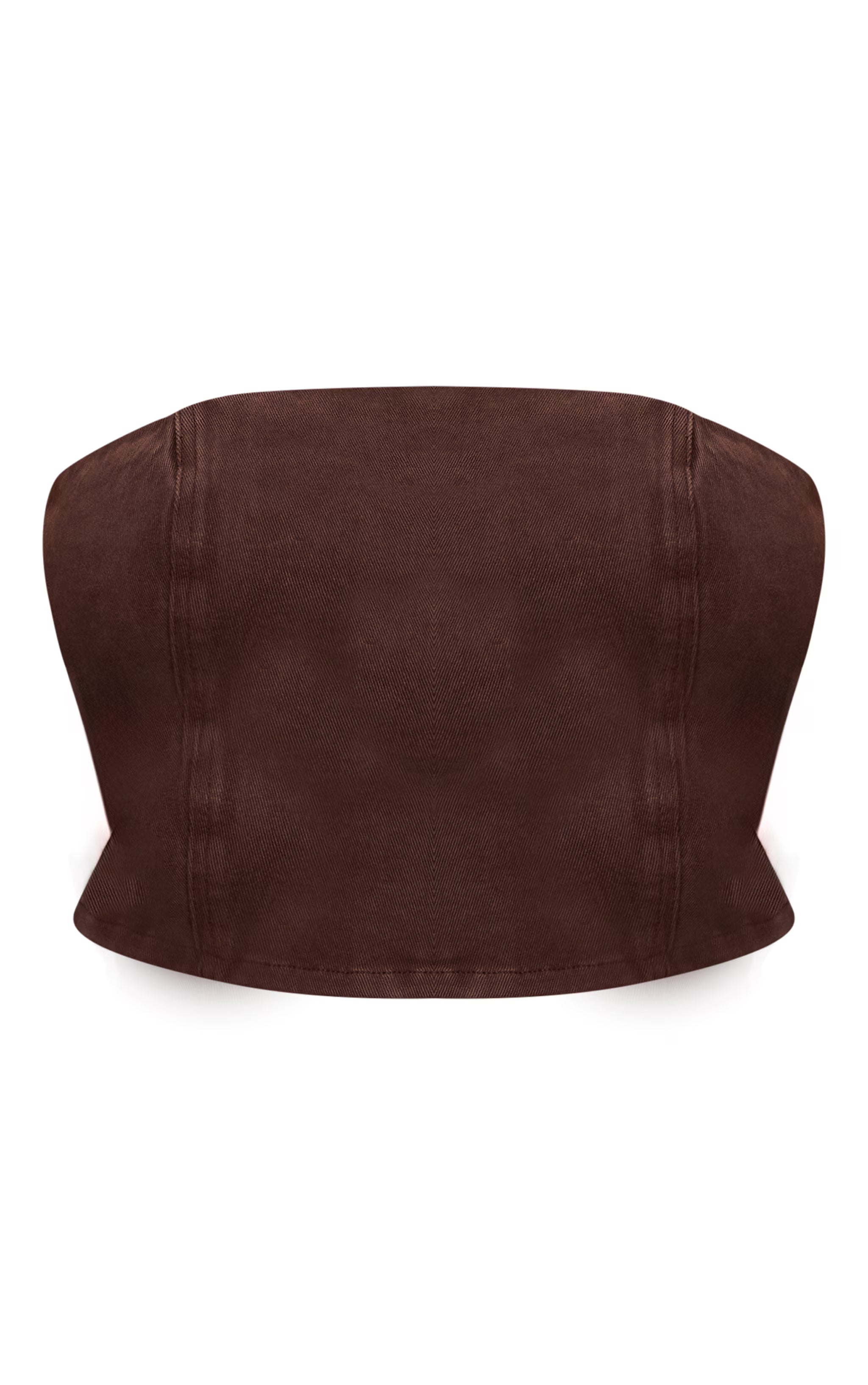 Level up your denim edit with the plus washed brown adjustable elasticated bandeau corset top. The warm brown tone adds a fresh twist on classic denim. Style with pleated pants for a structured contrast, or pair with heeled sandals and gold jewelry for sleek evening style.