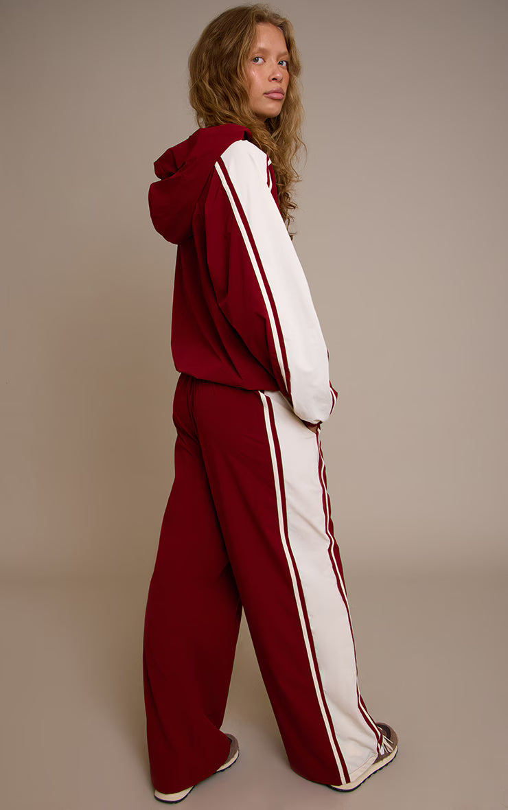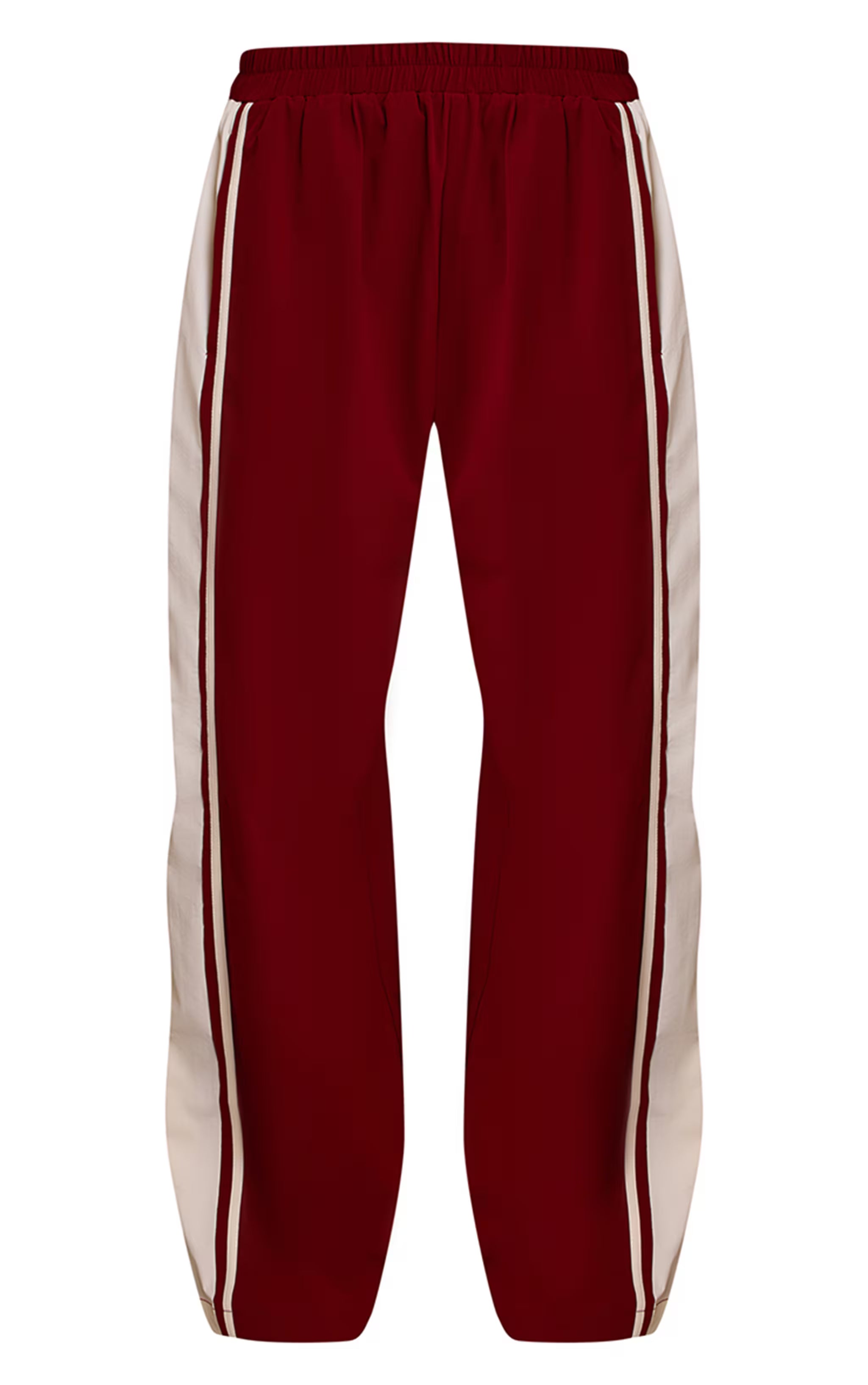 Elevate your loungewear with the red shell contrast stripe wide leg track pants. The loose fit and soft fabric make them ideal for comfort without compromising style. Pair with the matching hooded track jacket for a bold set or style with a simple tee for an easy weekend look.